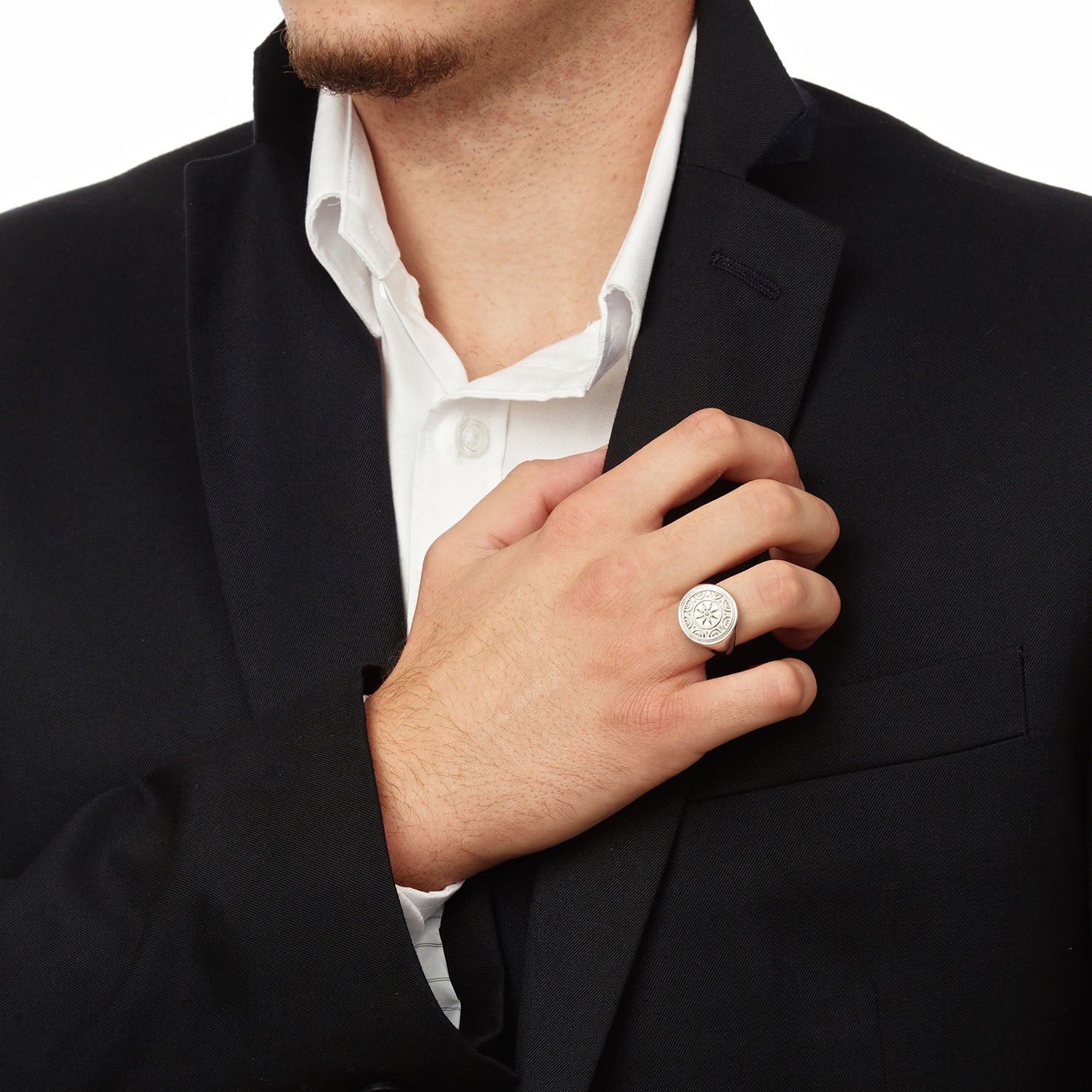Αρχαϊκό Ελληνικό Δαχτυλίδι «Μακεδονική Ασπίδα» από λευκόχρυσο 18 καρατίων. Κωδικός Προϊόντος: 5D1138D.