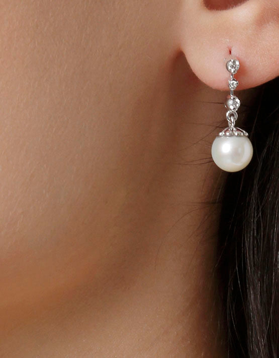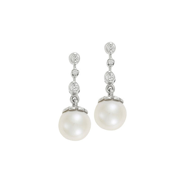 Σκουλαρίκια με διαμάντια και μαργαριτάρια σε λευκόχρυσο 18 καρατίων. Κωδικός προϊόντος: 846SK041P