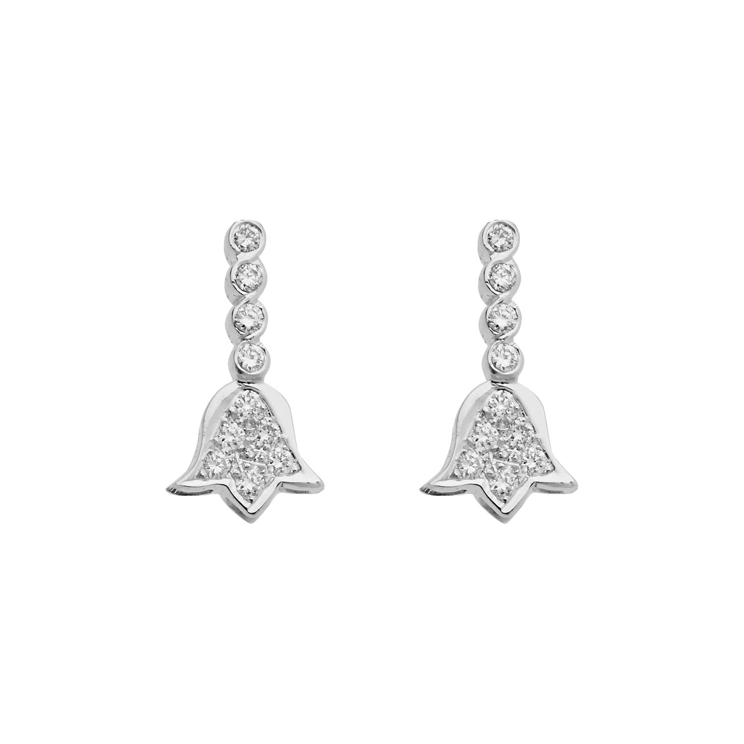 Σκουλαρίκια κρεμαστά από λευκόχρυσο 18 καρατίων με διαμάντια κοπής μπριγιάν. Κωδικός προϊόντος: 957SK27