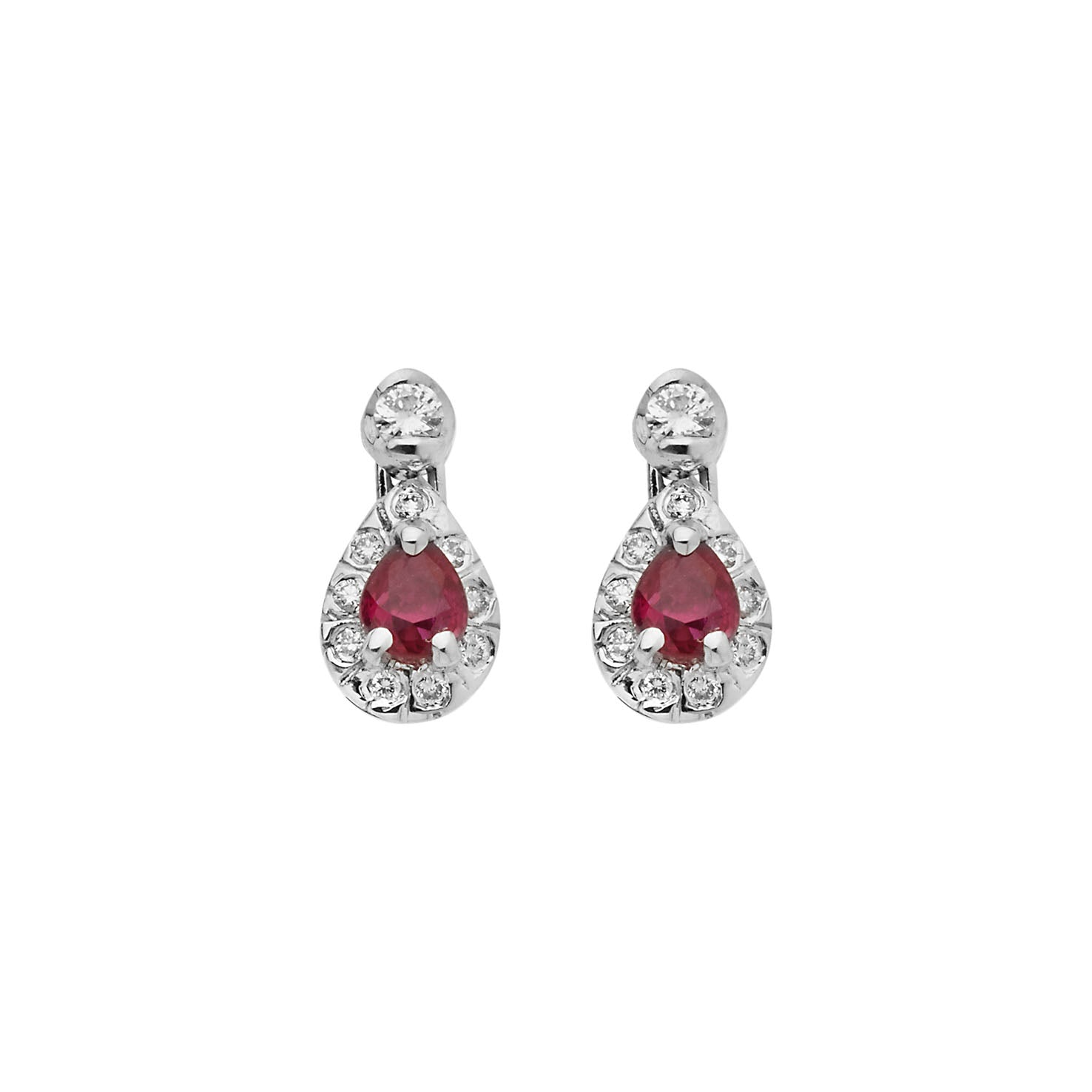 Σκουλαρίκια από λευκόχρυσο 18 καρατίων με οβάλ ρουμπίνια και διαμάντια κοπής μπριγιάν. Κωδικός προϊόντος: 879SK39WR