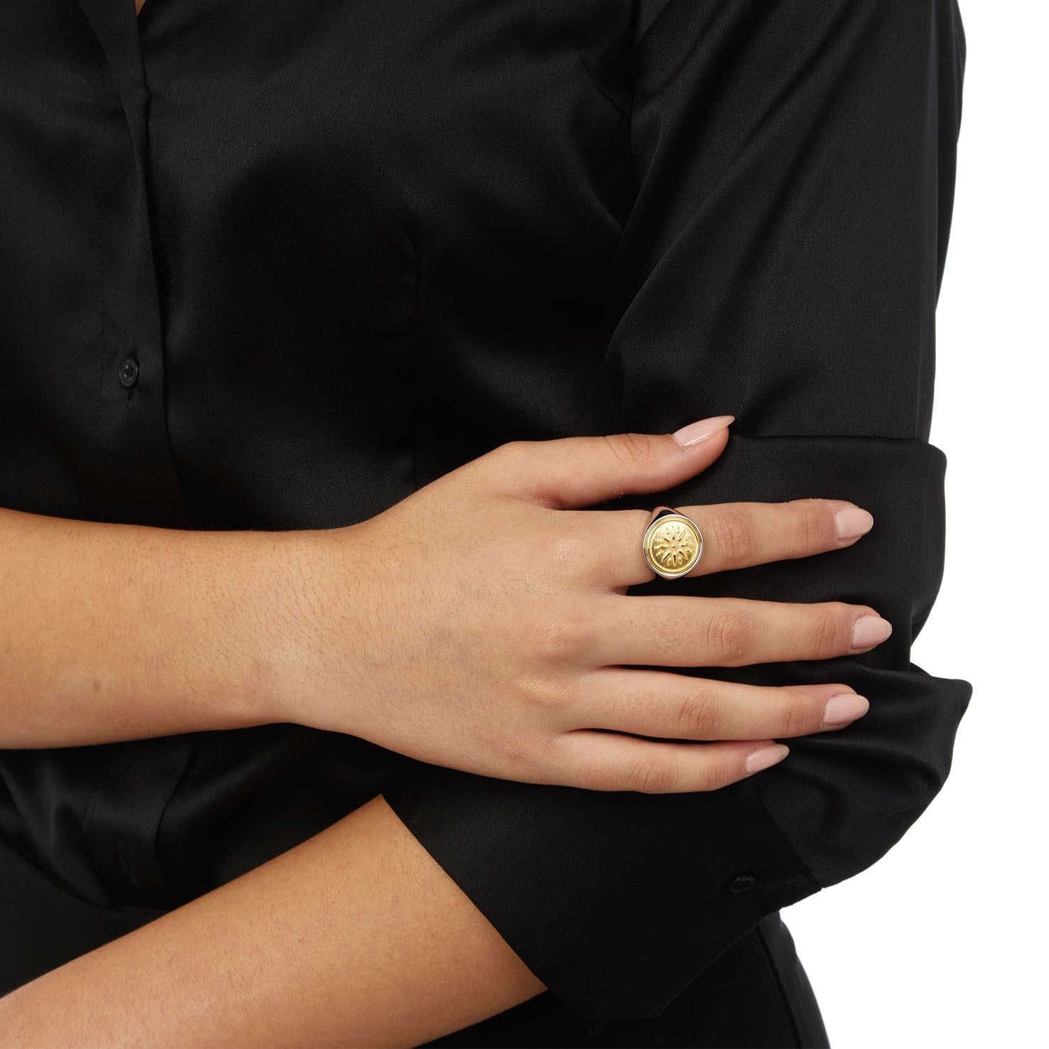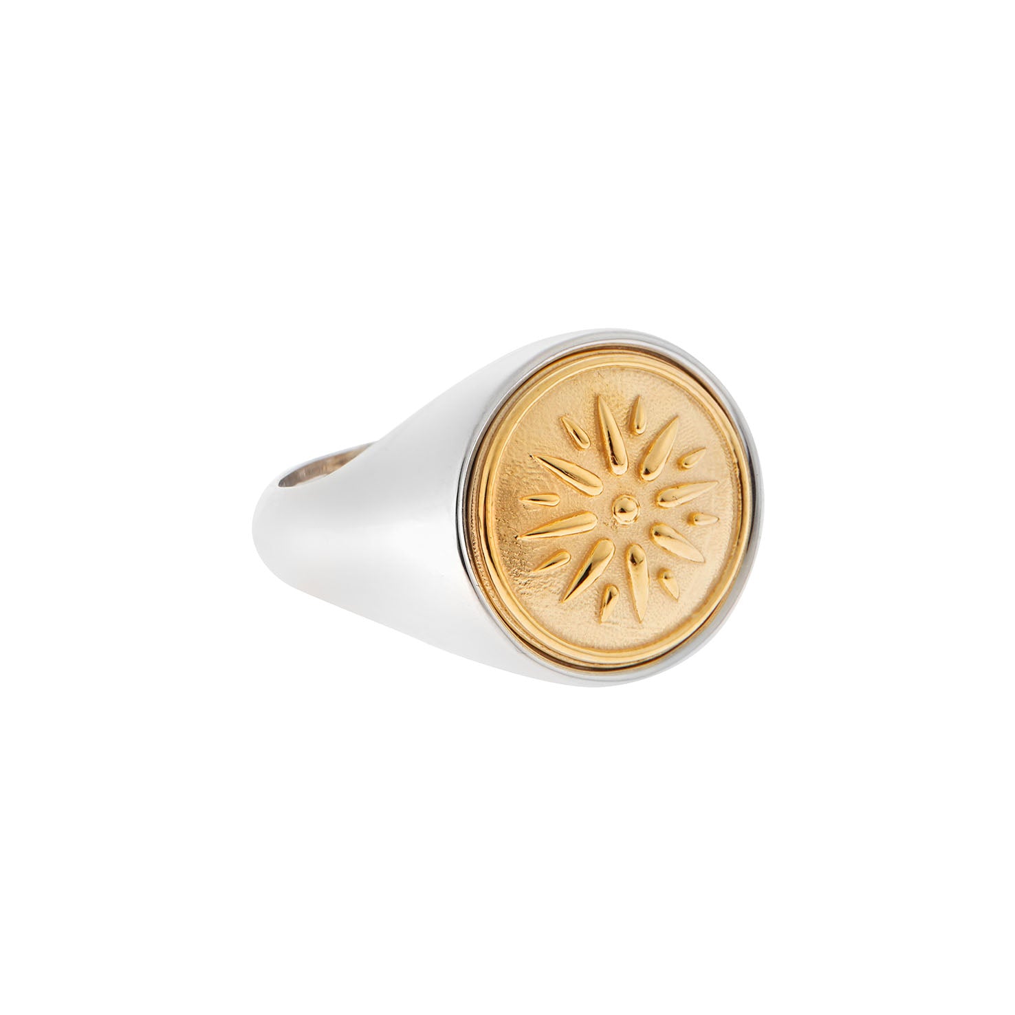 Αρχαϊκό χρυσό δαχτυλίδι «Μακεδονική Ασπίδα» από κίτρινο και λευκό χρυσό 18 καρατίων. Κωδικός προϊόντος: 372D1138A.