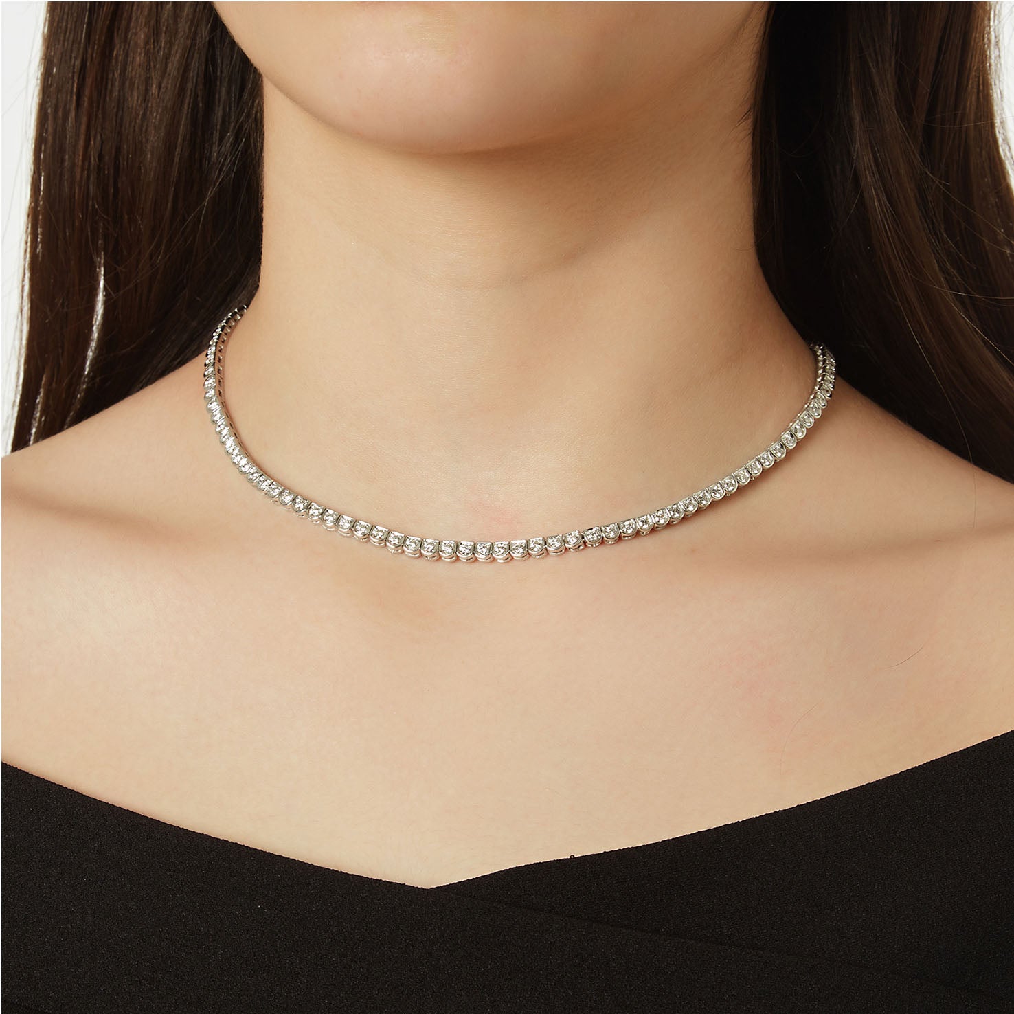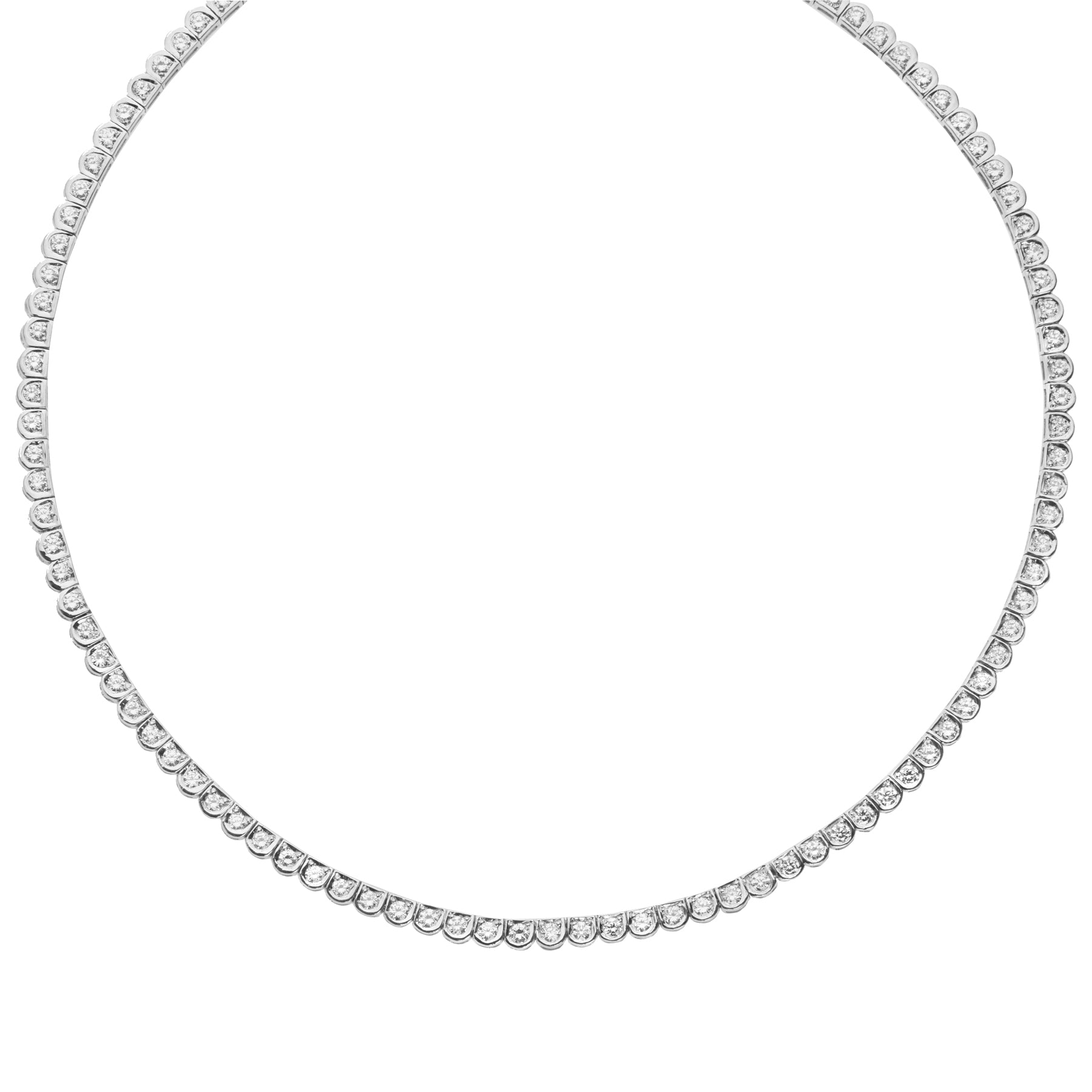 Κολιέ με γραμμή διαμαντιών, σχολαστικά χειροποίητο από λευκόχρυσο 18 καρατίων. Στρογγυλά διαμάντια κοπής μπριγιάν , συνολικού βάρους 3,75 καρατίων.