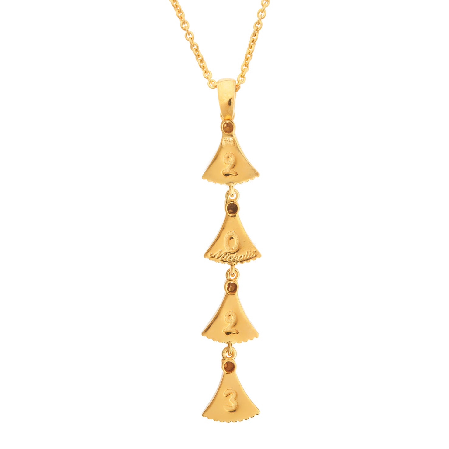 “Μadonna Lily” lucky charm necklace in gold plated 925 silver. Madonna lily is a Primordial symbol of Rebirth, Purity, Magnificence, Perfection and Power. This handmade necklace of timeless elegance will grant you good luck for the upcoming new year. On the reverse side the inscription “ Lucky charm 2023” reflects the special spirit of the upcoming Christmas making it the perfect gift for someone you love.