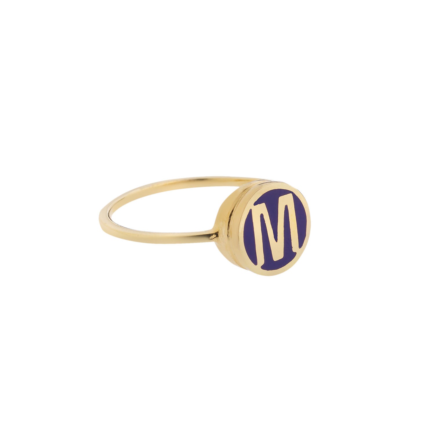 Alphabet Ring18KT Yellow Gold Enamel with the Letter “M”.