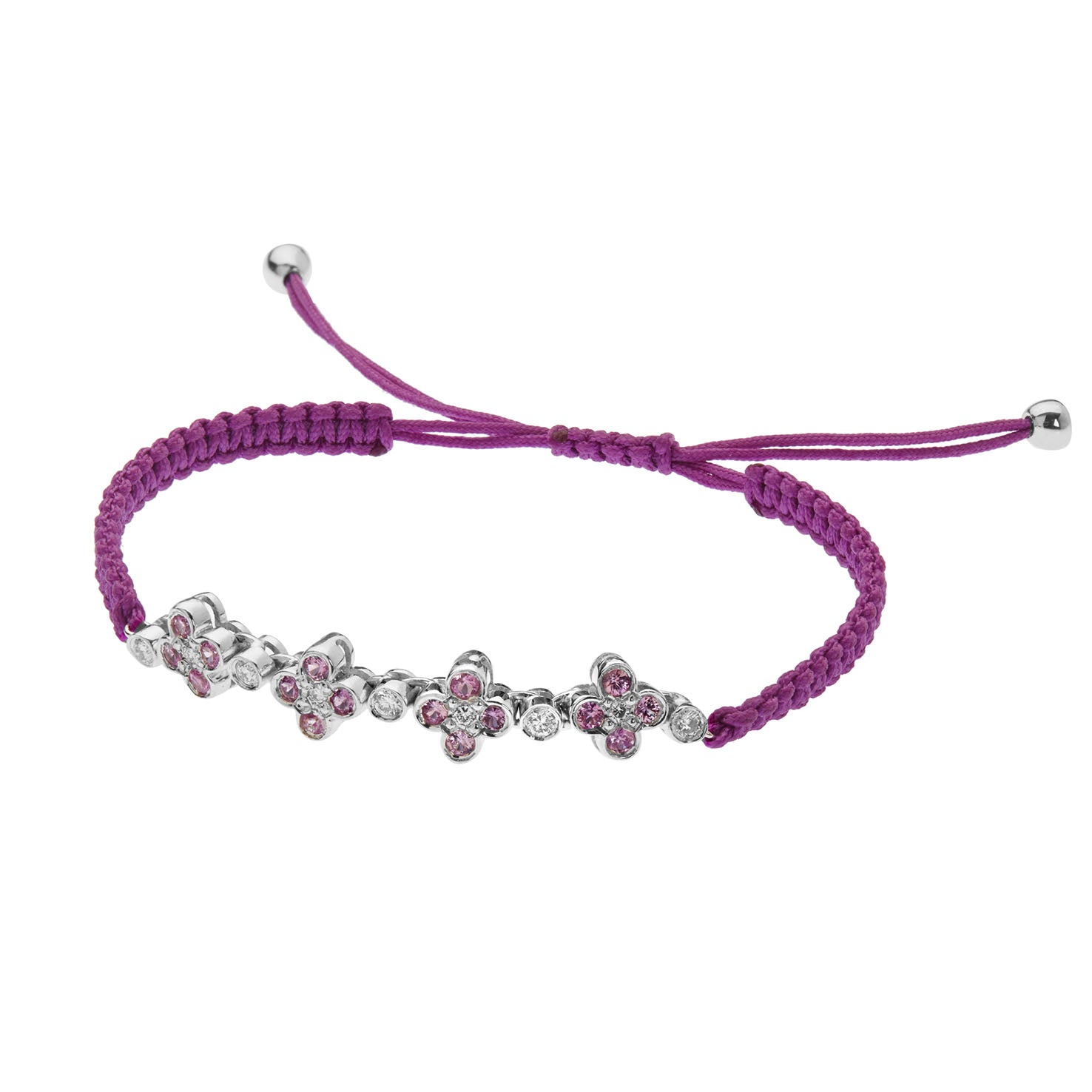 Brilliant cut Diamond and Pink Sapphire Cord Bracelet 18KT White Gold. Product Code : 489BA89