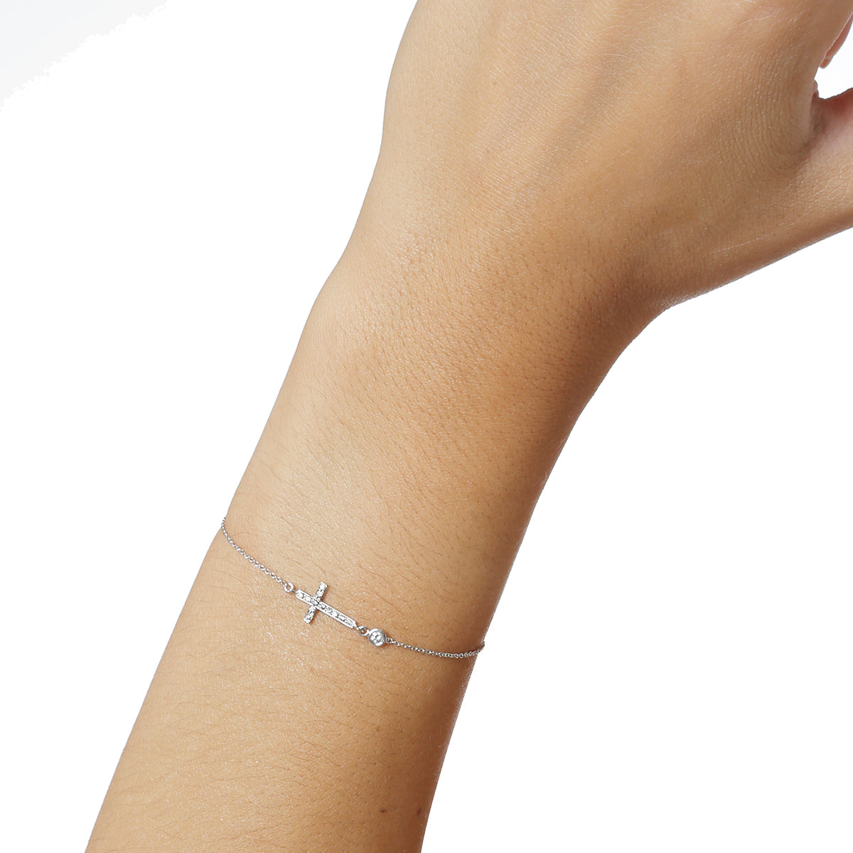 Brilliant cut Diamonds Cross Bracelet 18KT White Gold. Total diamond weight 0,09 carats. Michalis meticulously chose diamonds of superior sparkle and beauty from ethical sources. We handcraft all Michalis jewelry so as we can adjust yours to meet your particular preferences of design and budget. Along with your jewelry you will receive a guarantee that will assure you of its excellent quality.