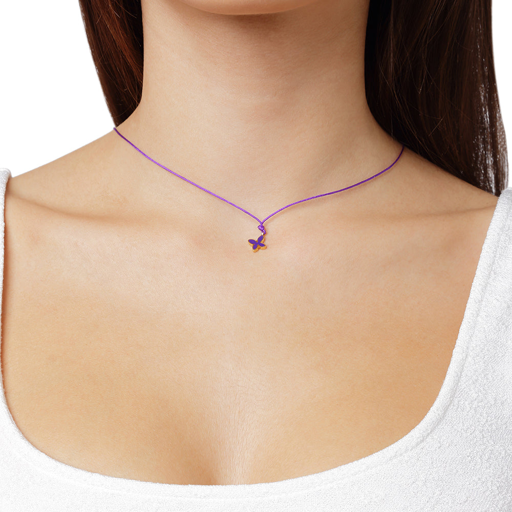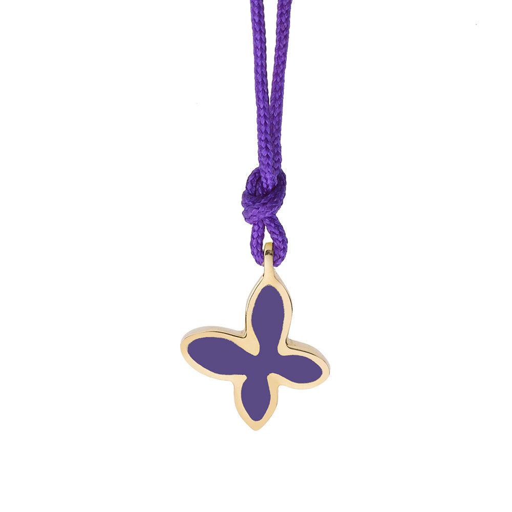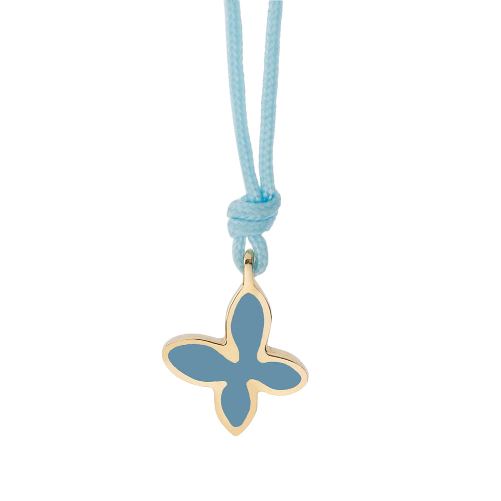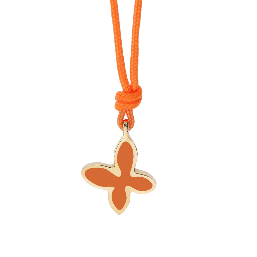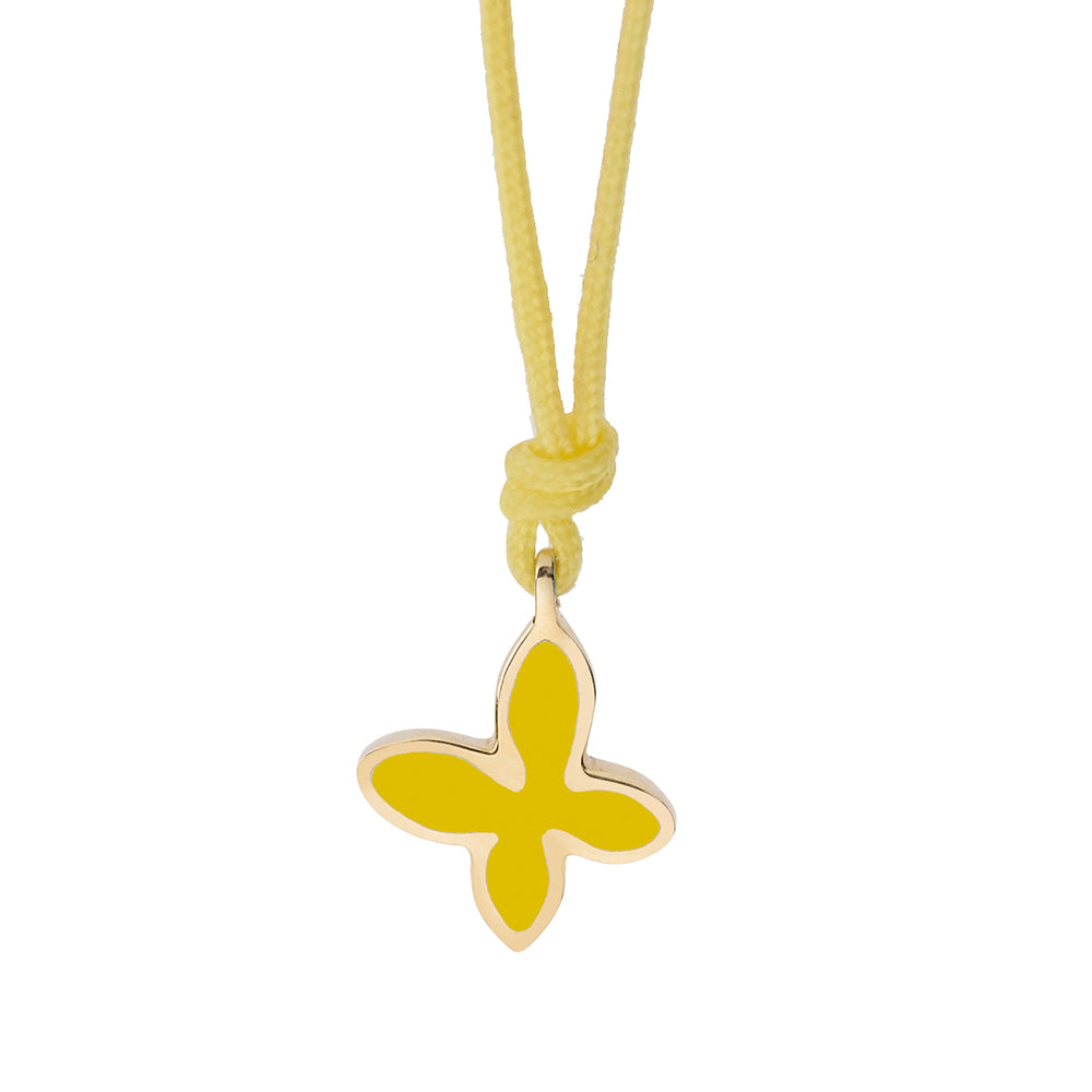 Butterfly, 18 carat yellow gold lucky charm enamelled charm. Butterflies signify good luck during cycles of change within your life , creativity, freedom and love. The pendant is handmade like all Michalis jewelry and is available in red, yellow, blue, orange, light blue or green enamel. You may have it with the color cord of your choice or with a 18 carat gold chain ( 40cm ) at an extra cost of 150 €.