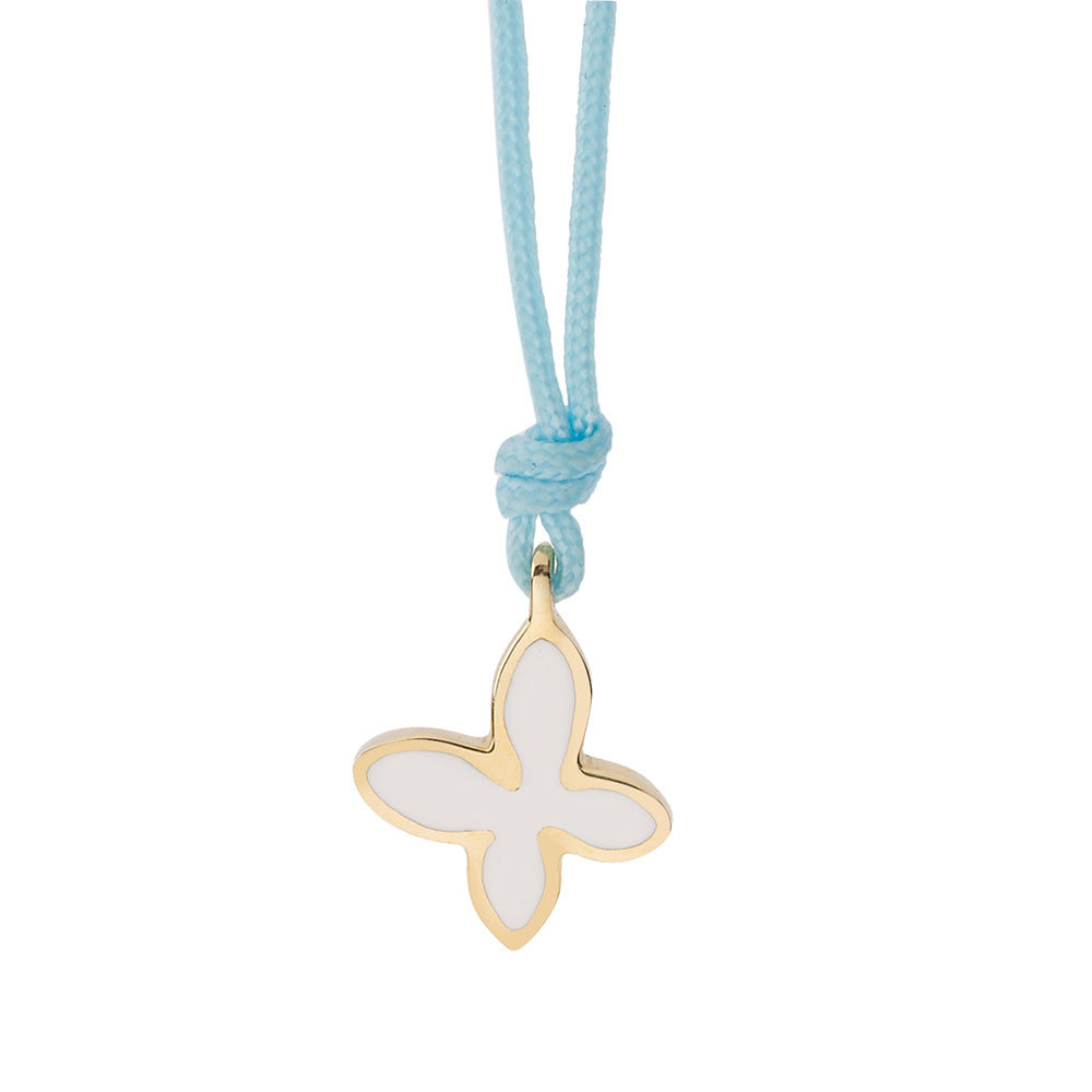 Butterfly, 18 carat yellow gold lucky charm enamelled charm.Butterflies signify good luck during cycles of change within your life , creativity, freedom and love. Product code: 463MPEDIK01cord