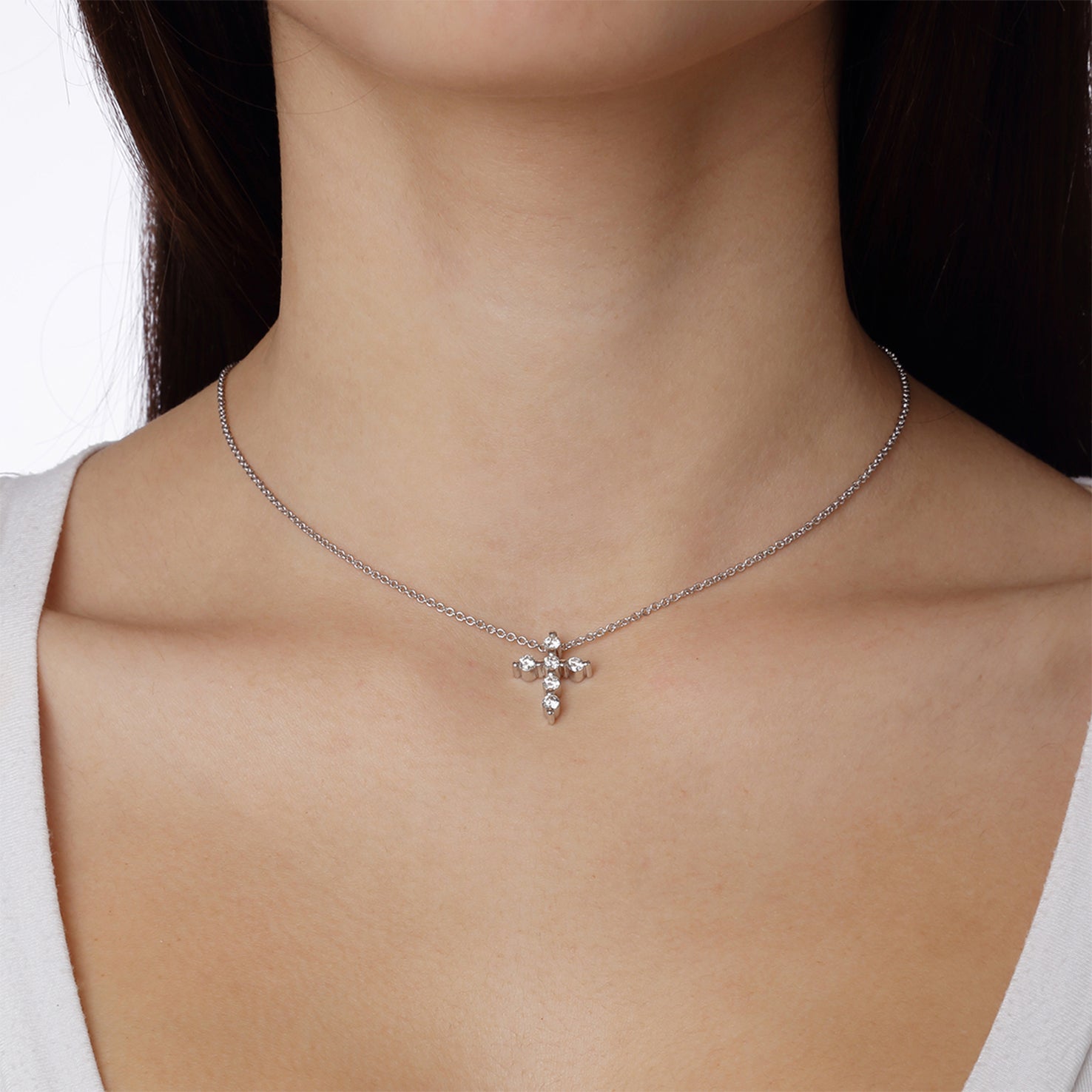 Diamond cross 18KT white gold on a chain. Product Code : 204SW64.