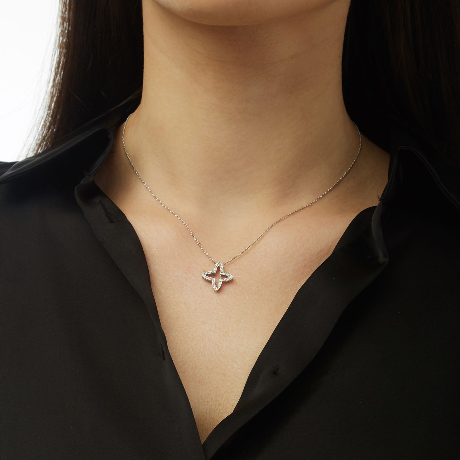 Diamond cross 18KT white gold on a chain. Total weight of round brilliant diamonds 0,12 carats. At Michalis, we meticulously select natural diamonds of superior sparkle and beauty from ethical sources. We handcraft in our jewelry studio all our jewels. Therefore we can create your own according to your preferences, with the sizes of stones and the color of gold you prefer. With your jewel you shall receive a guarantee with your jewel’s specifications that will assure you of its supreme quality.