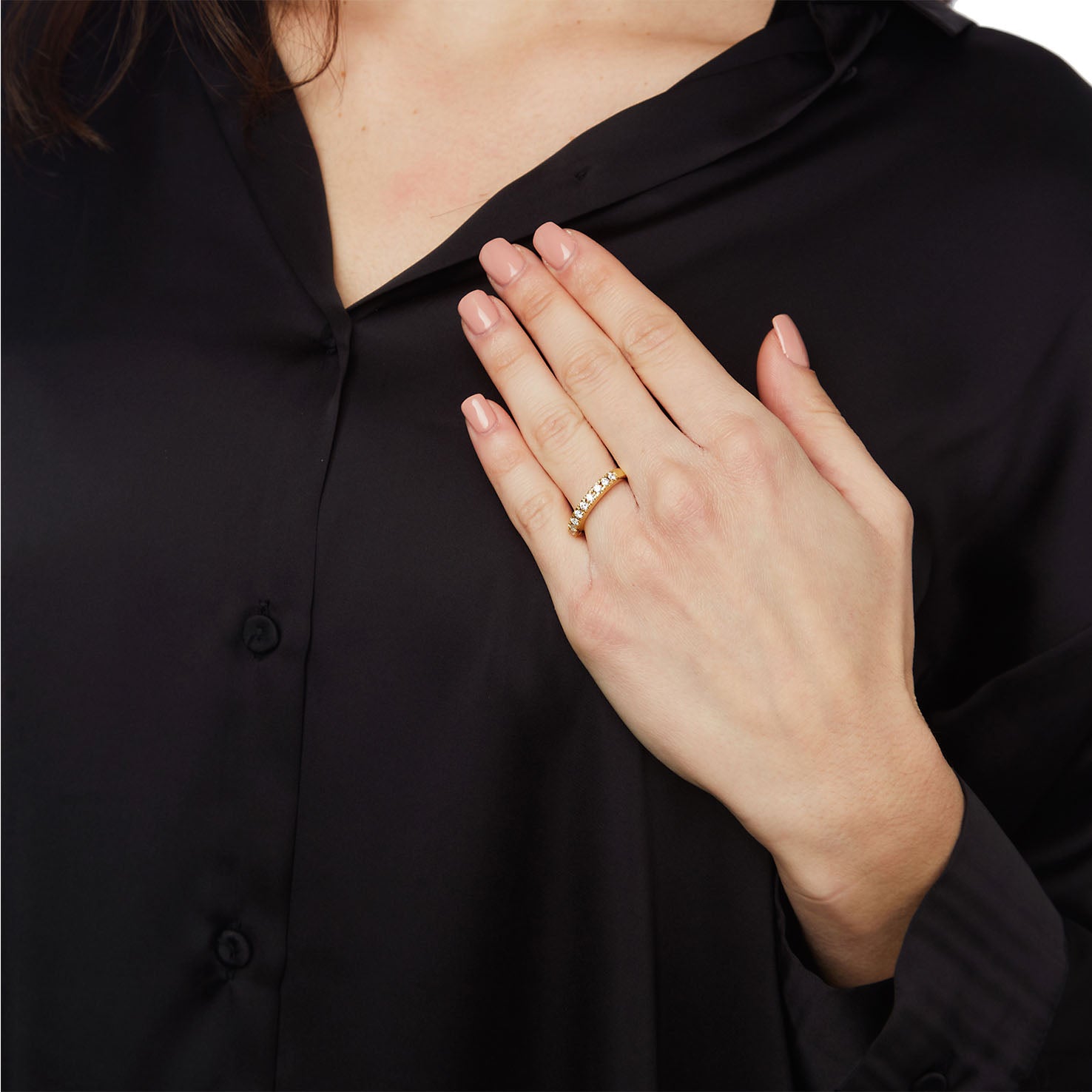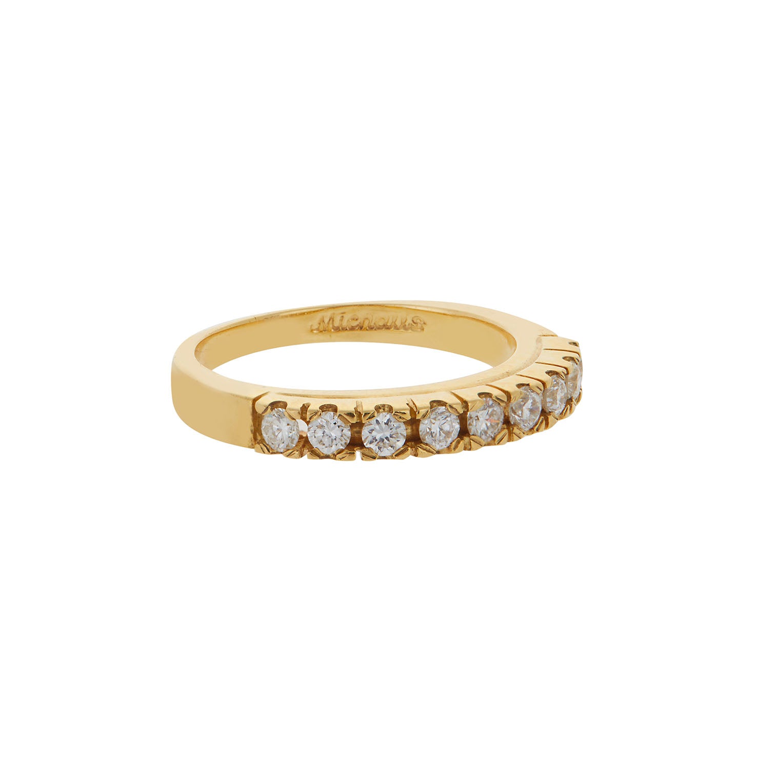 Diamond half band 18 carat yellow gold. Total weight of brilliant cut diamonds 0,41 carats. At Michalis, we meticulously select natural diamonds of superior sparkle and beauty from ethical sources. Our artisans craft by hand all our designs. With your jewel you shall receive a guarantee that covers the jewel's specifications and assures you of its supreme quality.