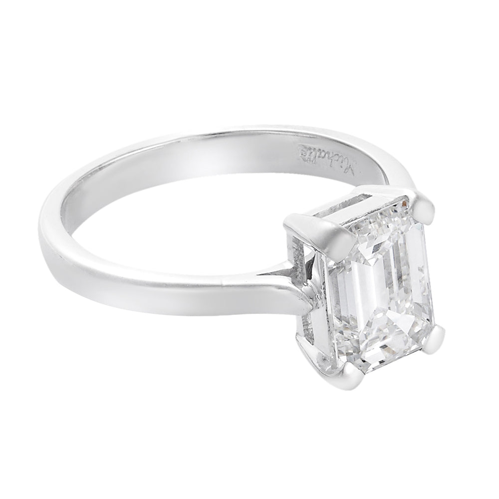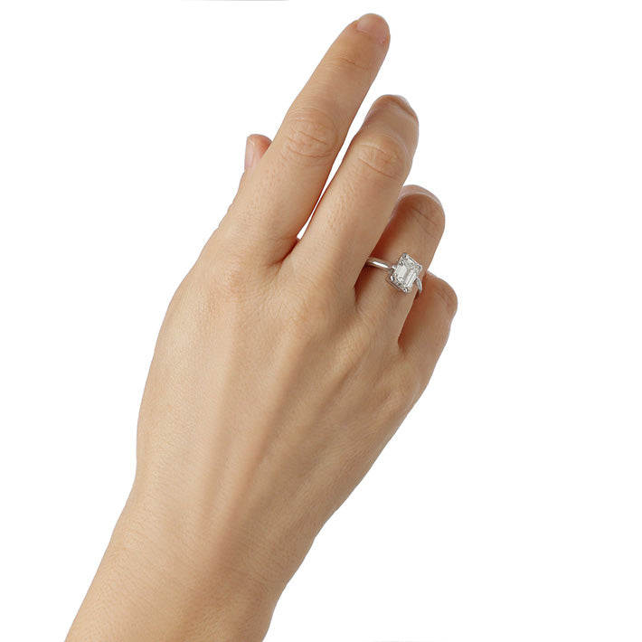 Emerald cut diamond solitaire 18KT white gold. Weight of diamond: 4,00 carats. At Michalis we meticulously select diamonds of superior sparkle and beauty from ethical sources. As our artisans craft by hand all our designs, we can adjust yours to meet your particular preferences with the size of stones that you want. Along with your jewelry you will receive a guarantee that will assure you of its excellent quality.