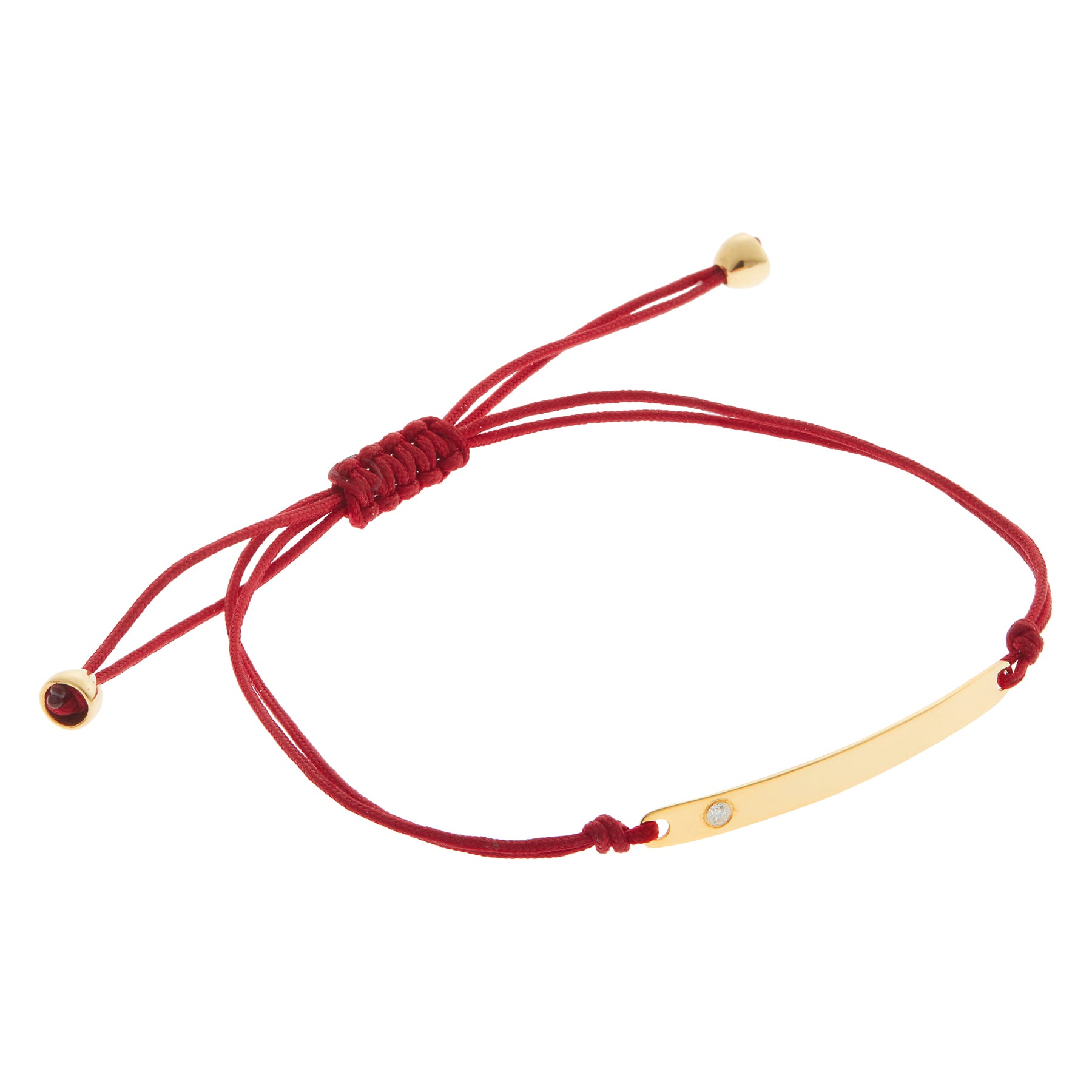 Engravable KT18 Yellow Gold and Diamond Tag Bracelet attached to a Cord. Weight of the brilliant cut diamond: 0,02 carats.