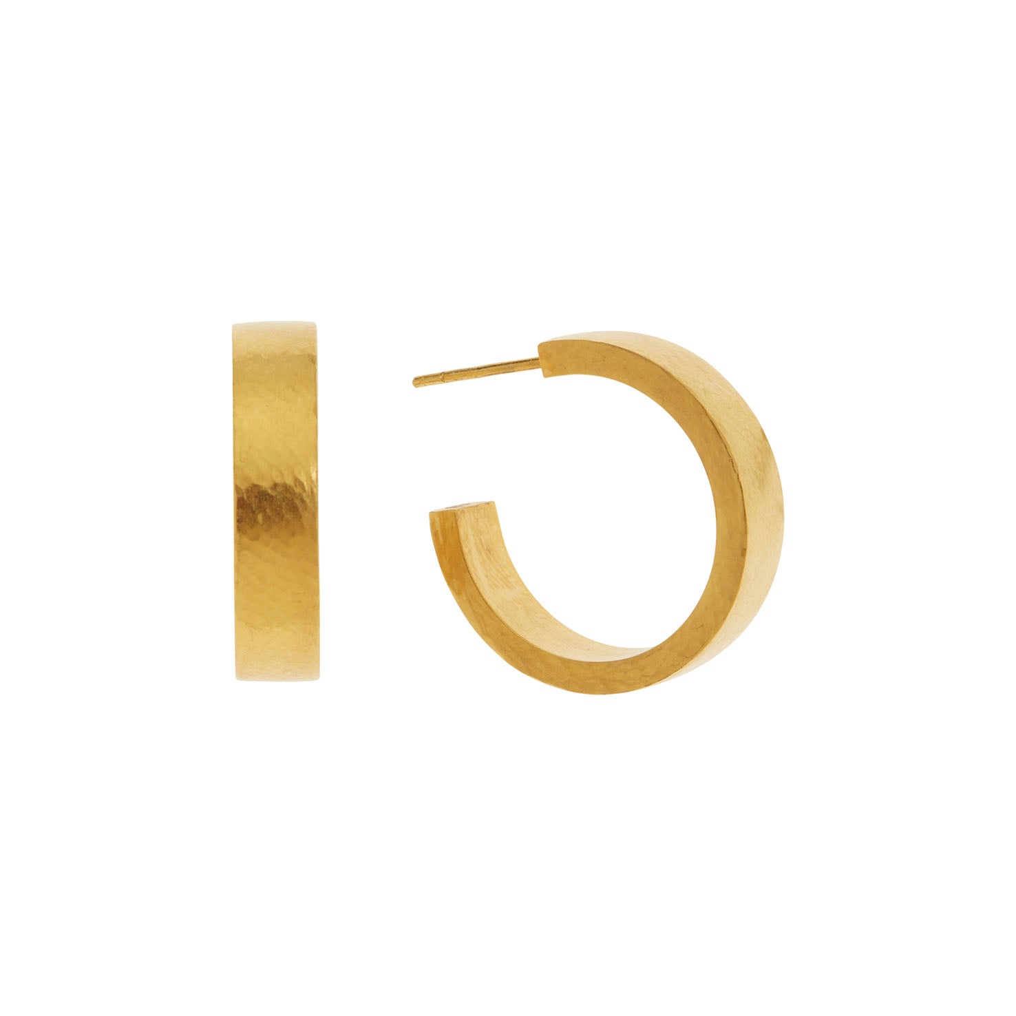 Hand Hammered Gold Earrings in 18KT Gold, Inspired by Ancient Greece. In our atelier in Athens, artisan jewelers skillfully shape, form, and texture by hand gold jewelry using hammering techniques. The hammering process gives the gold a unique and distinct appearance, making each piece one-of-a-kind. Hand hammered gold jewelry has a timeless and classic appearance, making it suitable for a wide range of styles and occasions. Since each piece is individually crafted by hand, customers may have the opportunity to request custom designs or alterations to suit their preferences.