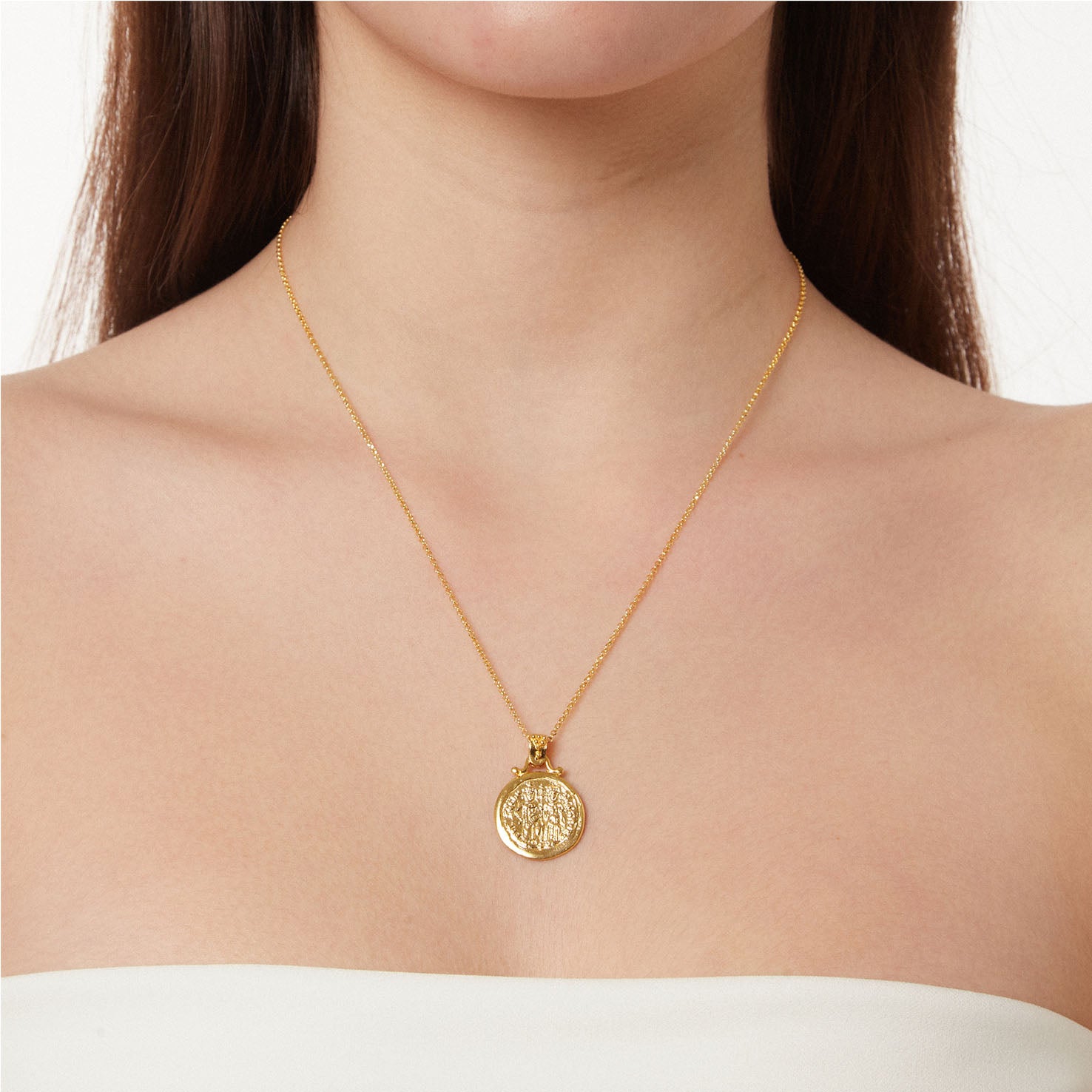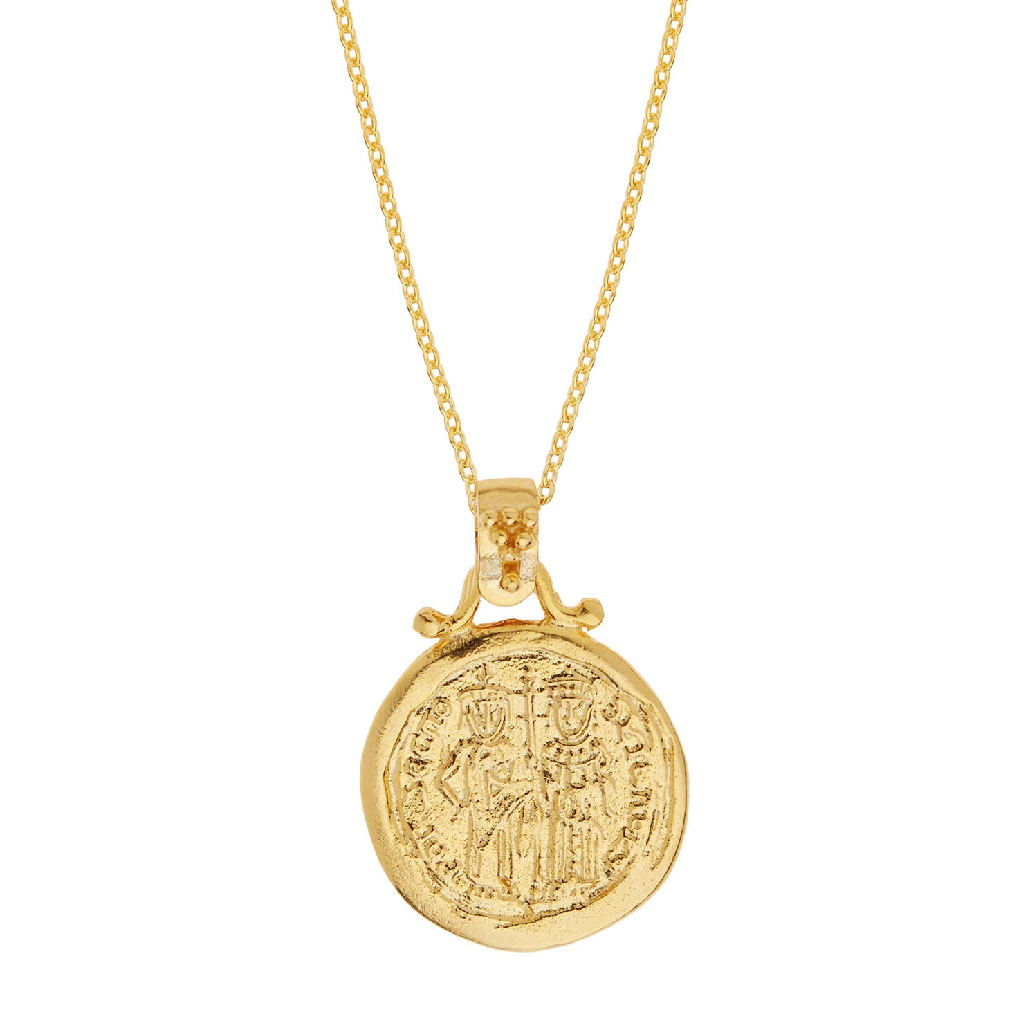 Handmade 14KT Yellow gold Byzantine Coin Pendant "Konstantinato" Konstantinato is a traditional Christian symbol of religious devotion and faith that is often worn as a form of protection against evil. Οur jeweler artisans handcraft it from 14KT or 18KT yellow gold. With your purchase you will receive a guarantee that will cover the specifications of your jewel and will assure you of its excellent quality. It can be available with a chain of your preference at an extra cost.