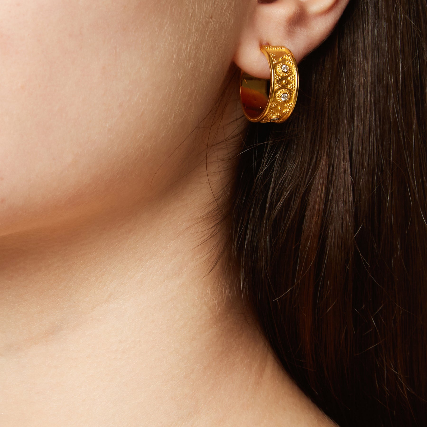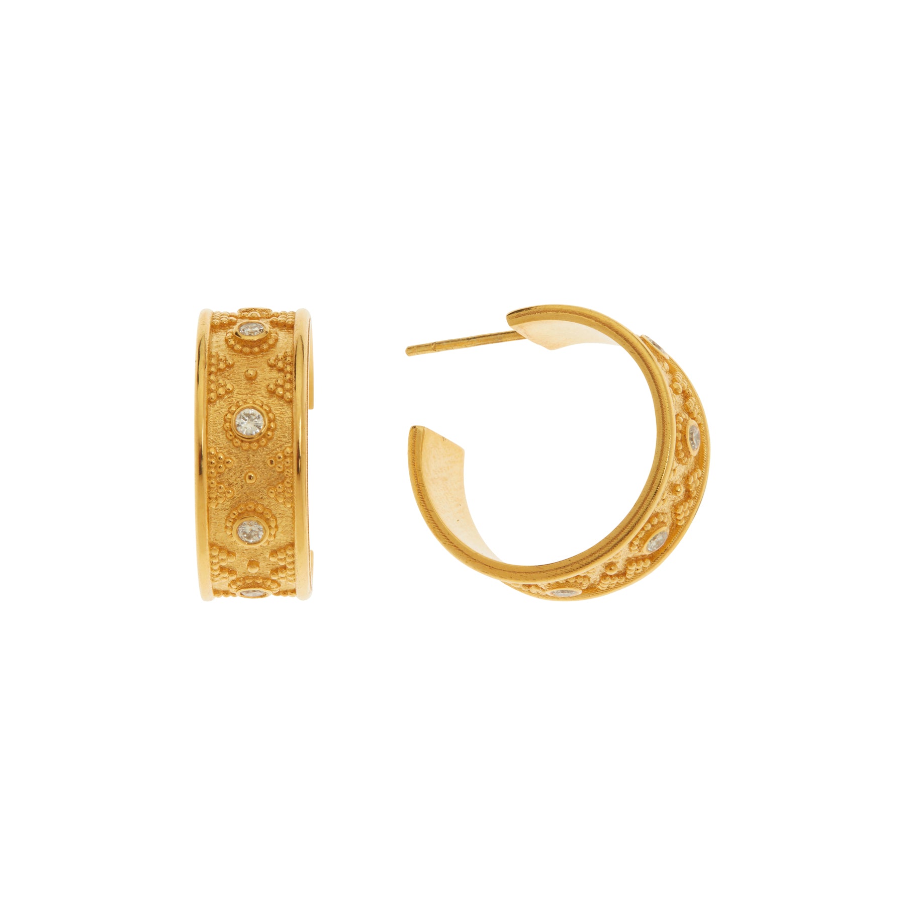 Handmade Byzantine Hoop Earrings 18KT Yellow Gold with Diamonds