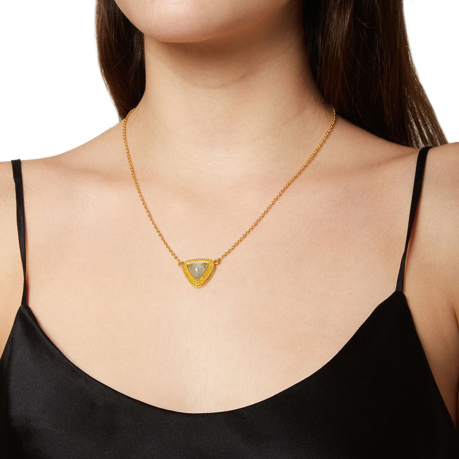 Handmade chain necklace 18KT yellow gold inspired by Byzantium with an aquamarine stone.