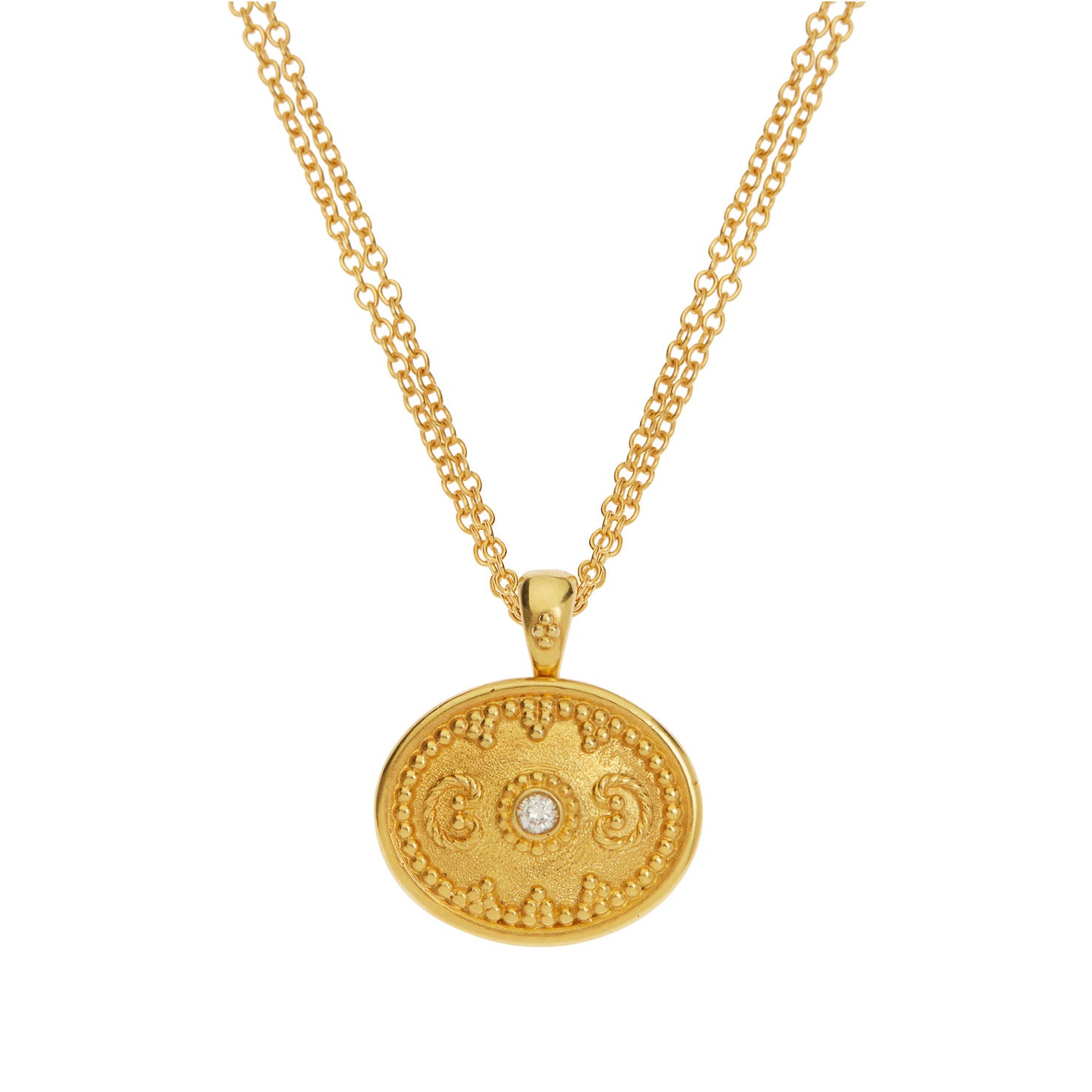 Handmade pendant 18KT yellow gold inspired by Byzantium with a Brilliant cut Diamond
