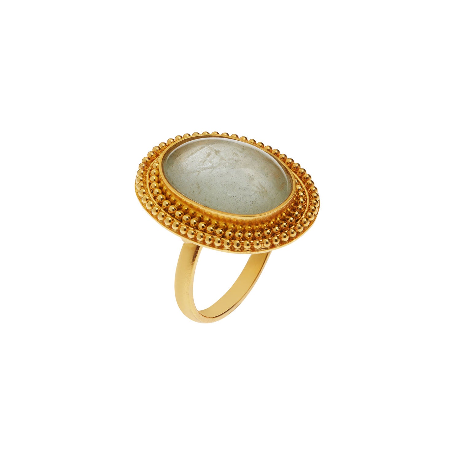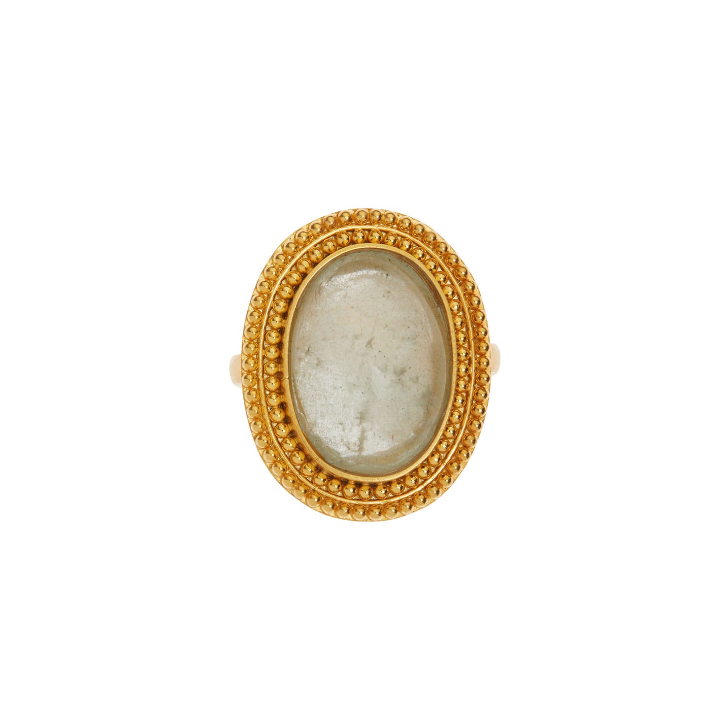 Handmade ring 18KT yellow gold inspired by Byzantium with an aquamarine stone.