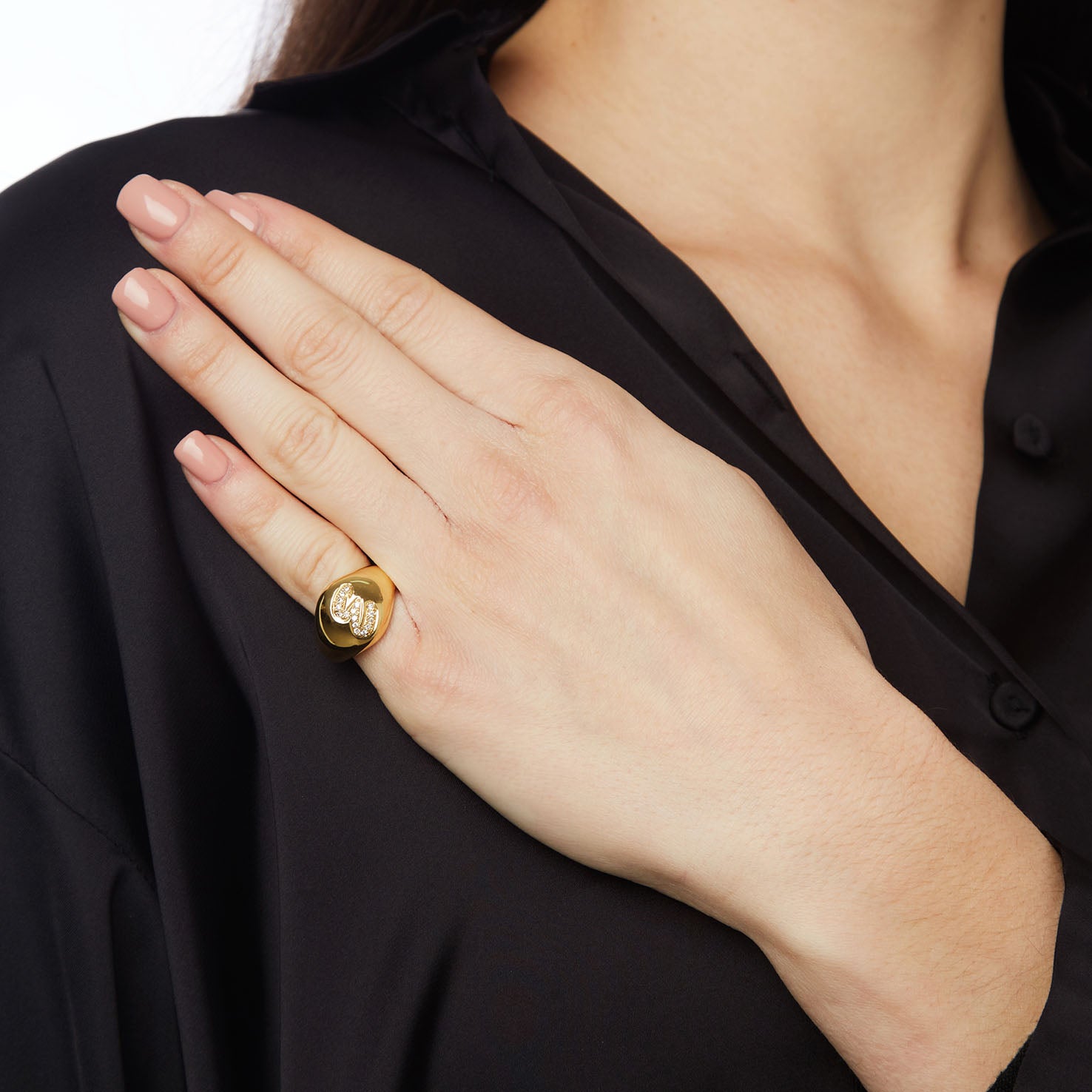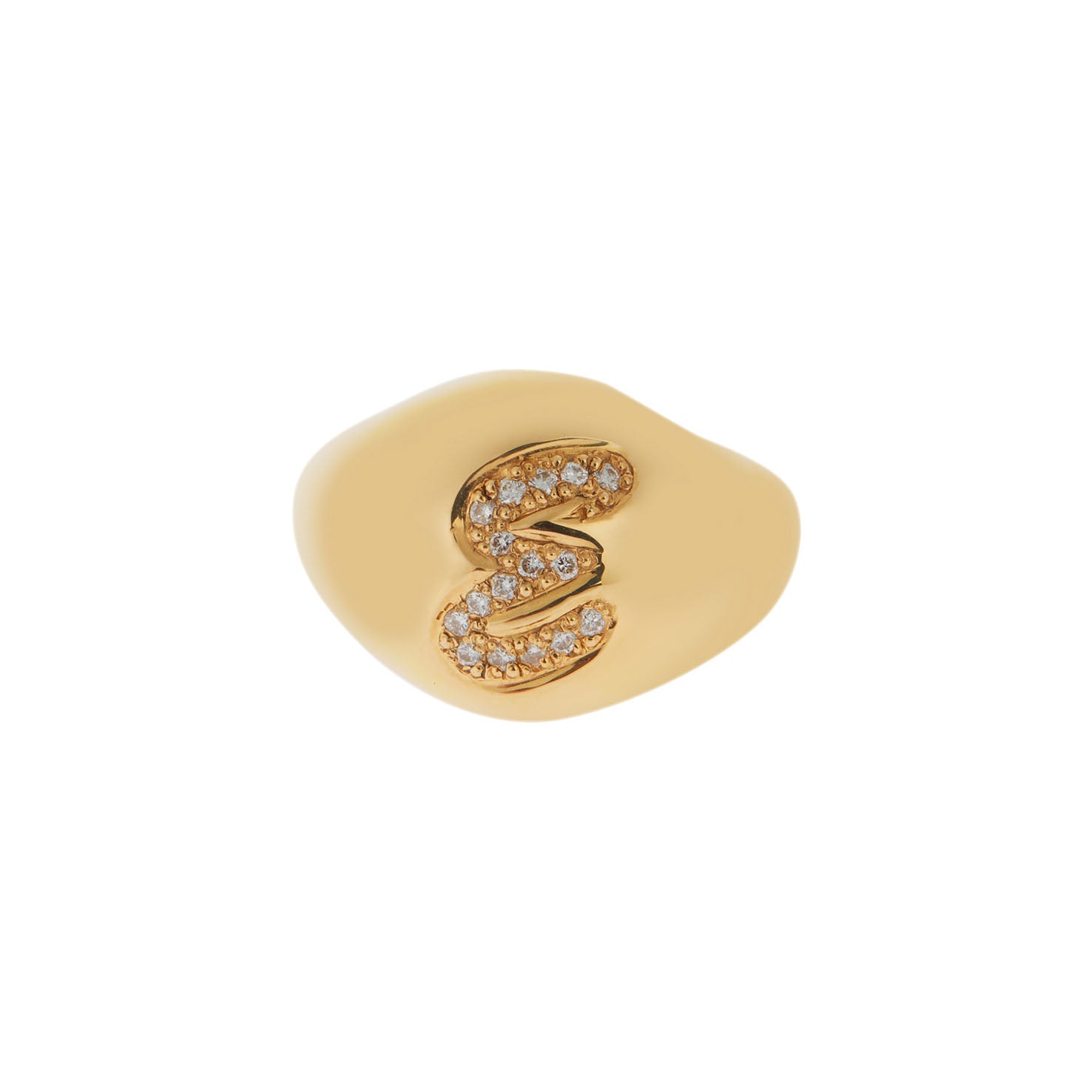 Handmade ring 18KT yellow gold with the letter "E" and brilliant cut diamonds. Product Code : 300DA7.