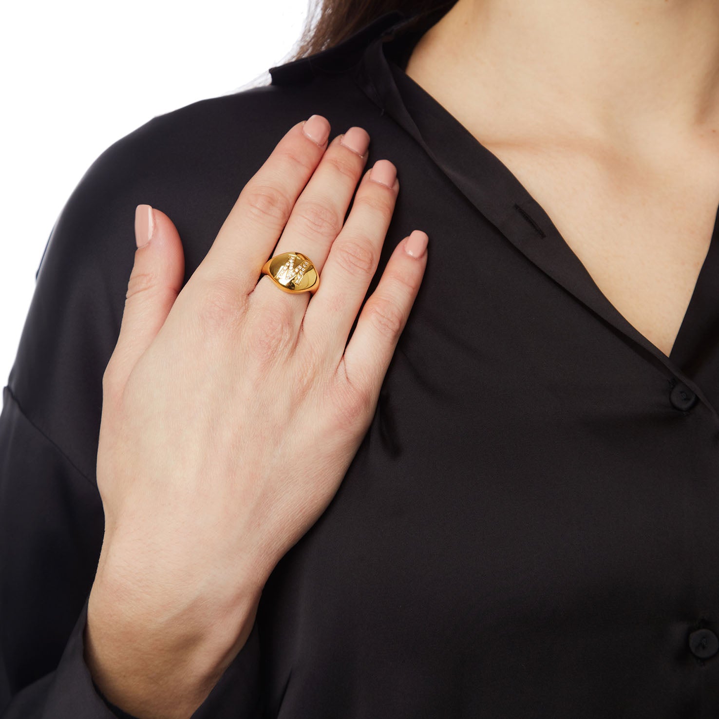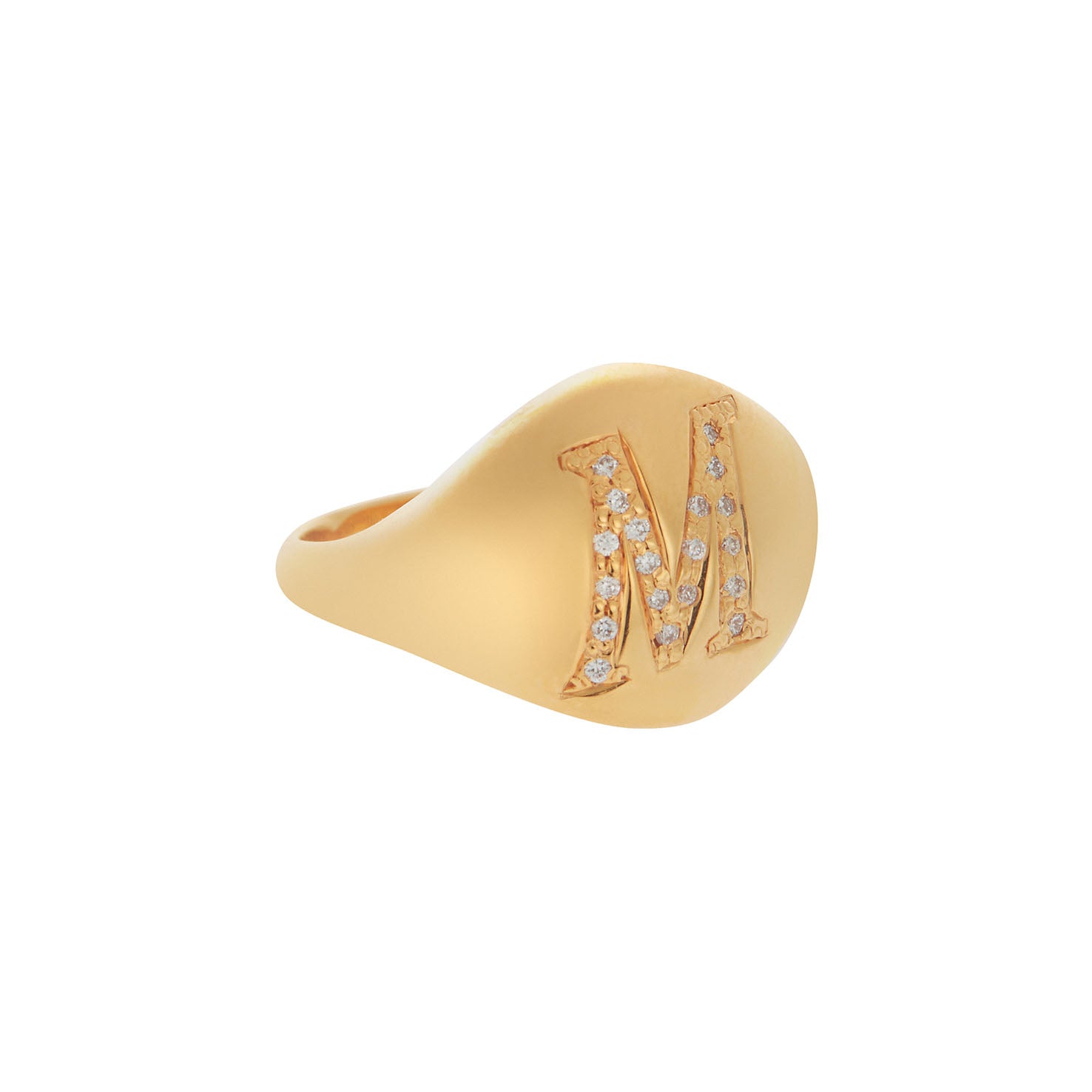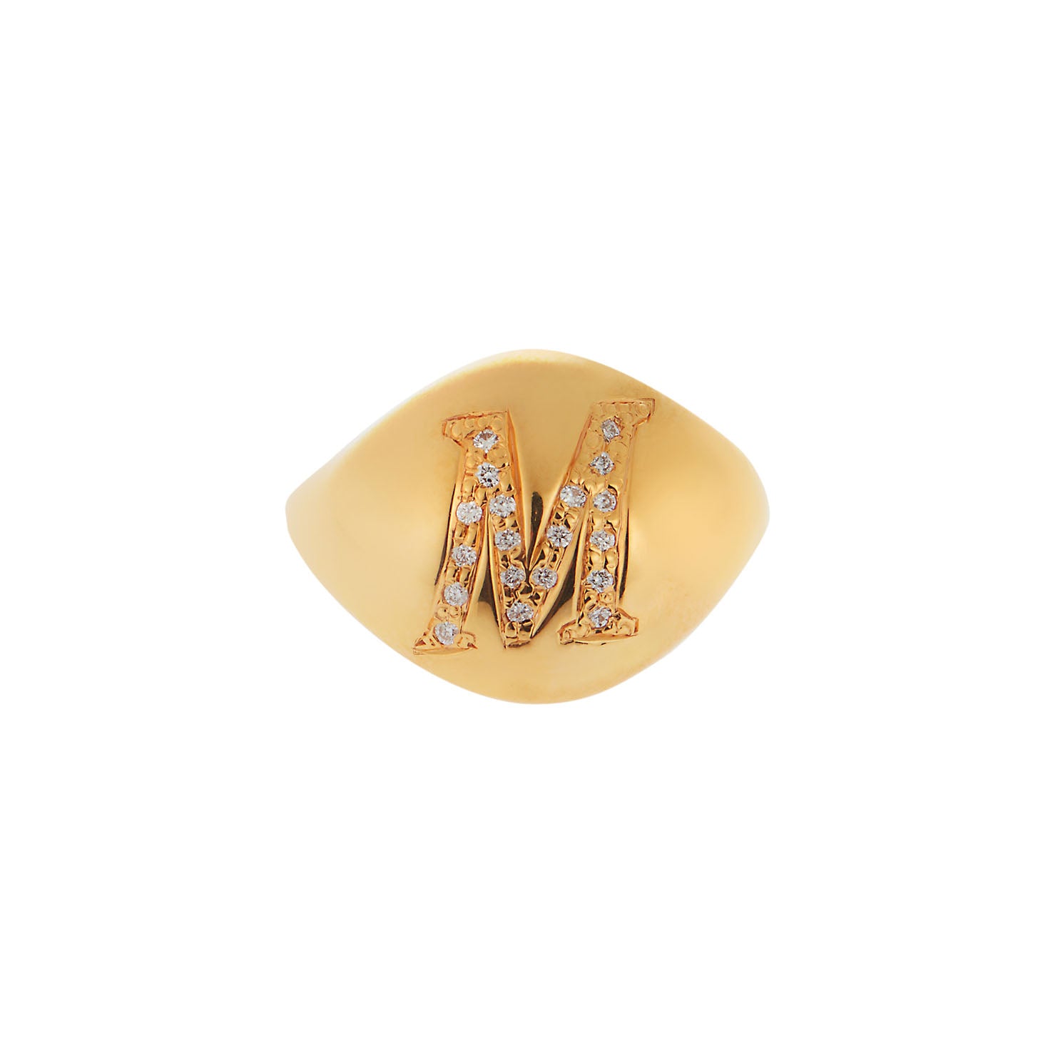 Handmade ring 18KT yellow gold with the letter "M" and brilliant cut diamonds. Product Code : 1326DA51P.