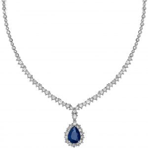 Necklace 18KT White Gold with Pear cut Sapphire and Brilliant cut Diamonds. Product Code : 316KW58S
