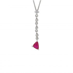 Necklace Pendant 18KT White Gold with a Trillion cut Ruby and Brilliant cut Diamonds. Product Code : 558ME46WR