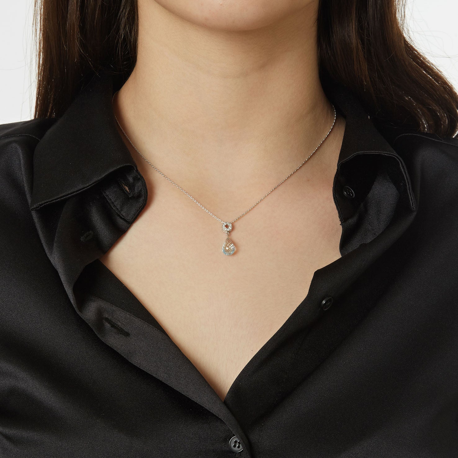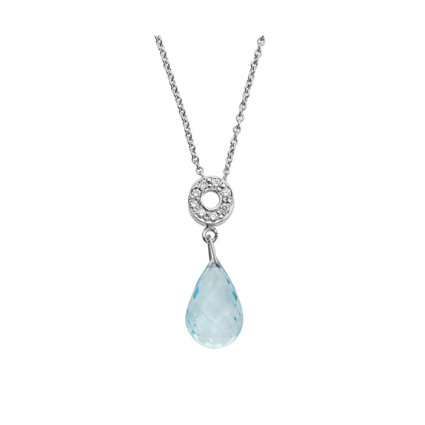 Necklace Pendant 18KT White Gold with Blue Topaz and Brilliant cut Diamonds. Product Code : 713M133