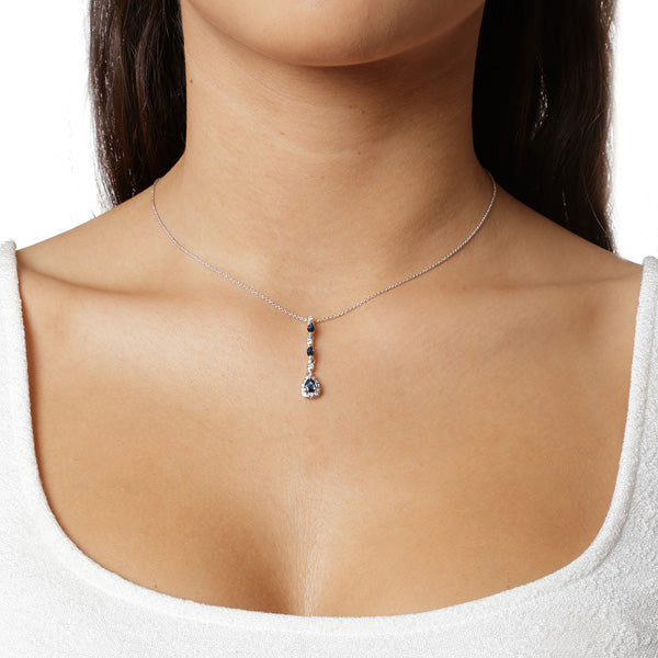 Necklace Pendant 18KT White Gold with Sapphires and Brilliant cut Diamonds. Marquise and pear cut sapphires 0,85 total weight. Round brilliant diamonds 0,13 total weight.