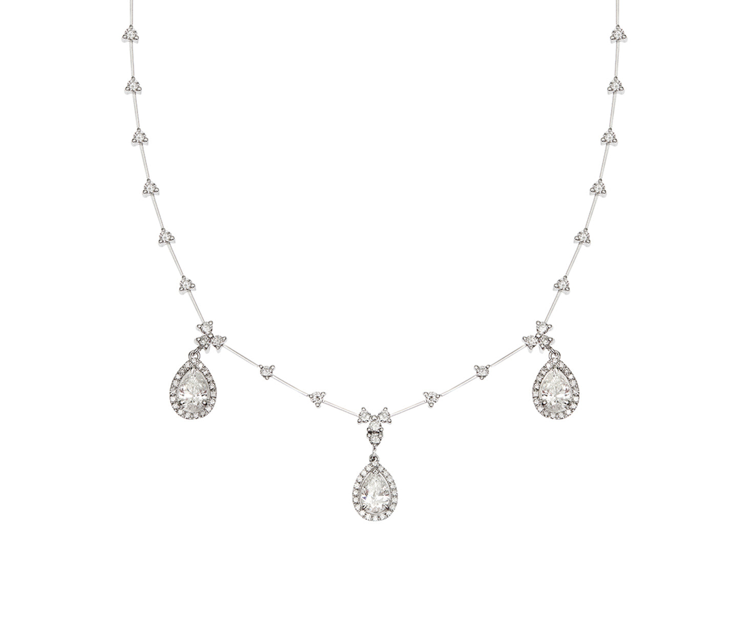 Necklace White Gold K18 with Brilliant and Pear Cut Diamonds. Product Code : 1188.NE.D.88888