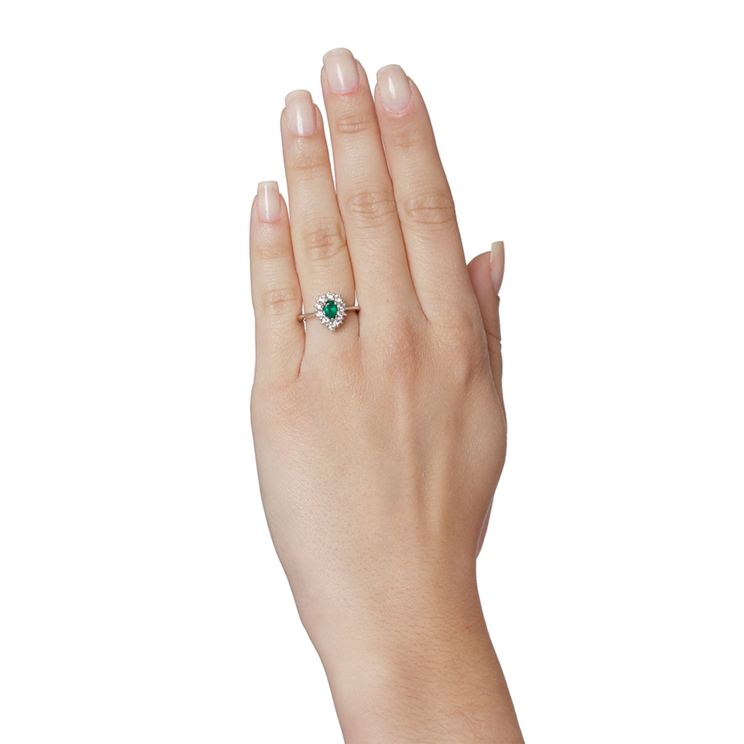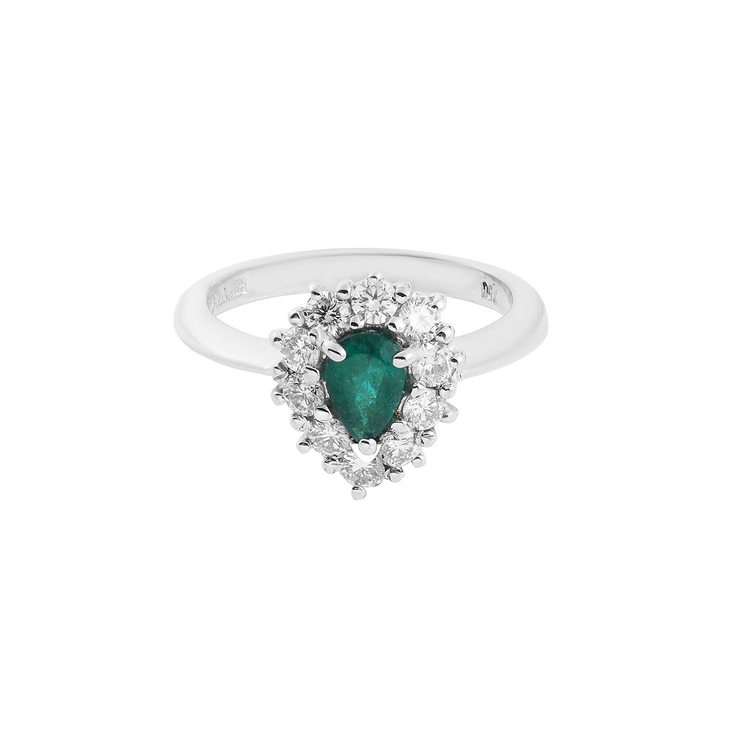 Pear-cut emerald and diamond ring 18 carat white gold. Product Code : 1154DW69E