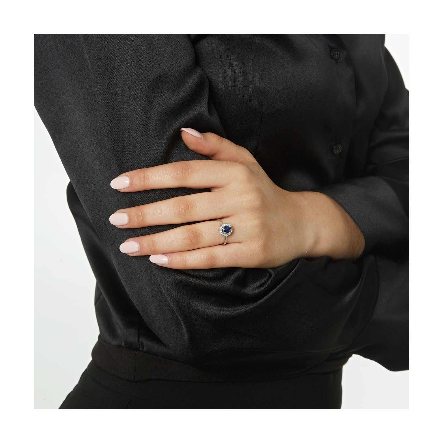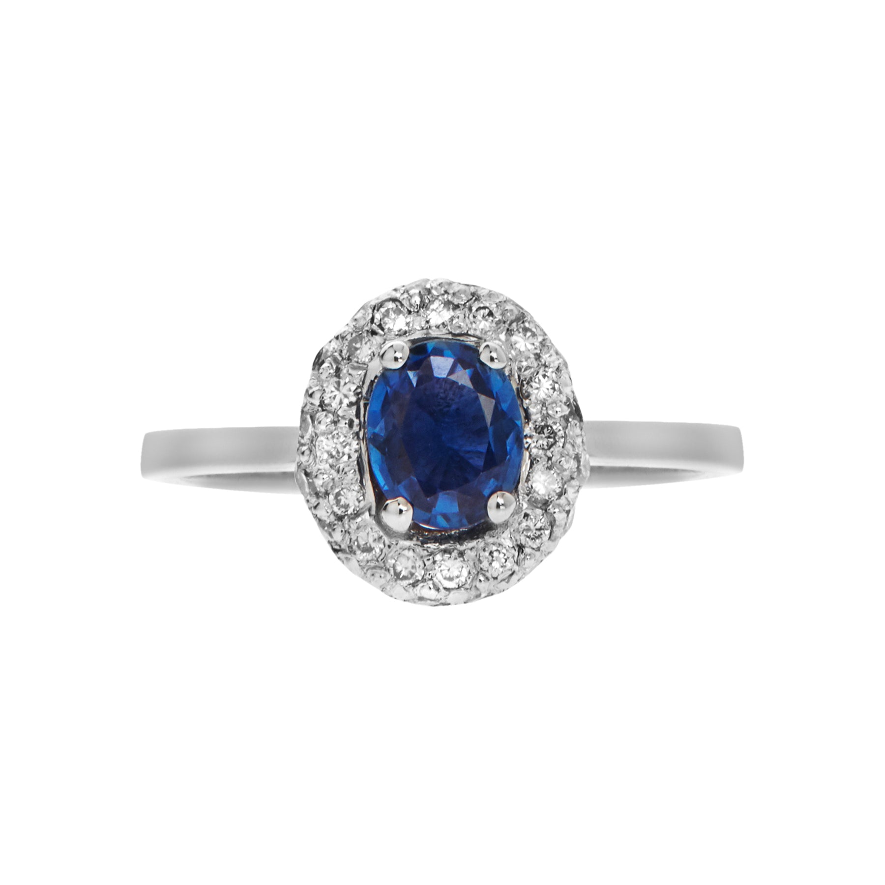 Ring 18KT White Gold with an Oval Sapphire and Brilliant cut Diamonds. Product Code:1281DW59S