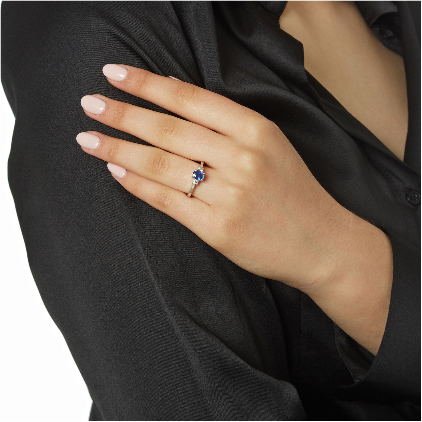 Ring 18KT White Gold with an Oval Sapphire and Brilliant cut Diamonds. Sapphire 0,85 carats. Total diamond weight 0,16 carats.