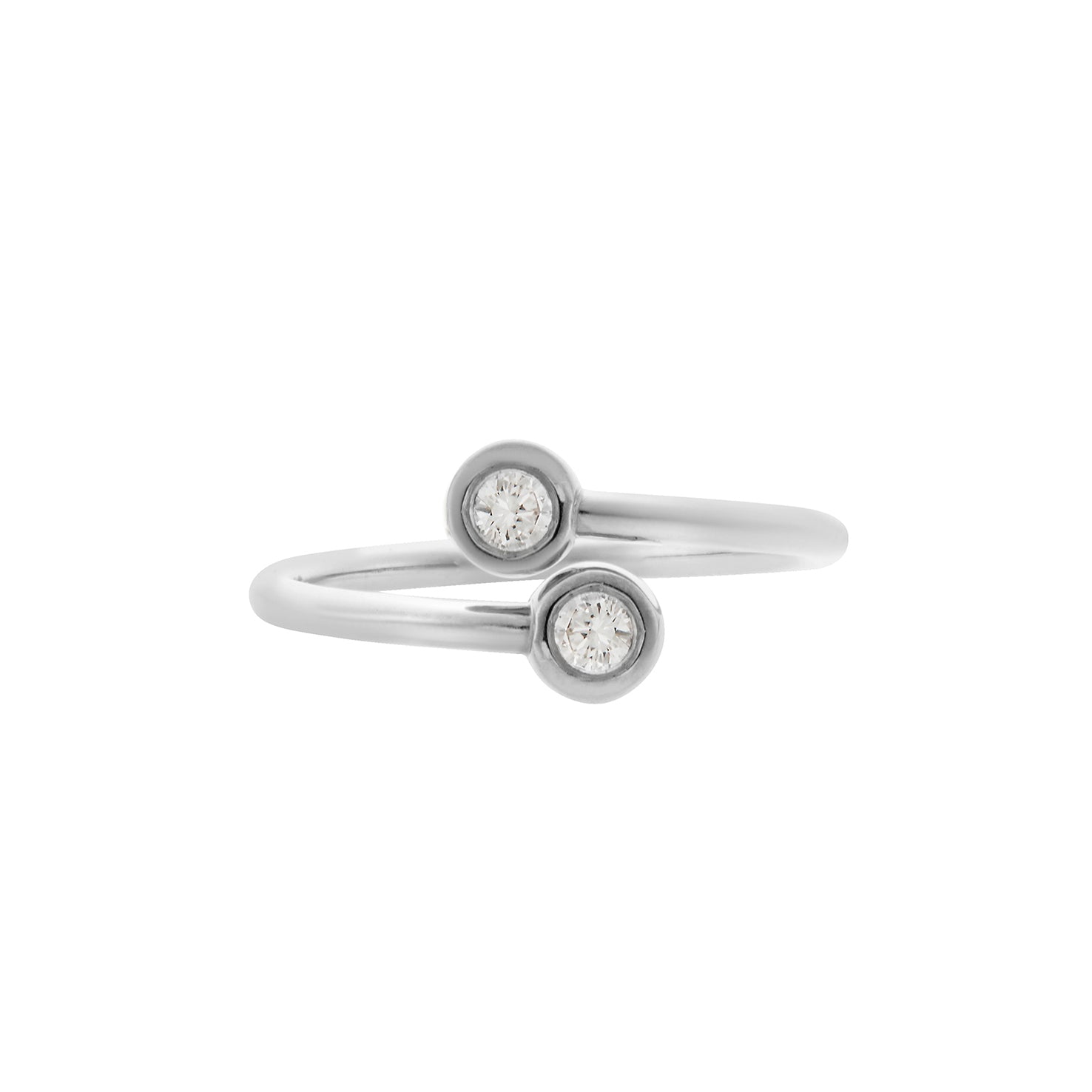 Ring with two brilliant cut diamonds KT18 white gold. Total weight of diamonds 0,11 carats. At Michalis we meticulously select natural diamonds of superior sparkle and beauty from ethical sources. Our artisans jewellers, gem setters, polishers handcraft with great caution all our designs. With your jewel you shall receive a guarantee that covers the jewel’s specifications and assures you of its supreme quality.