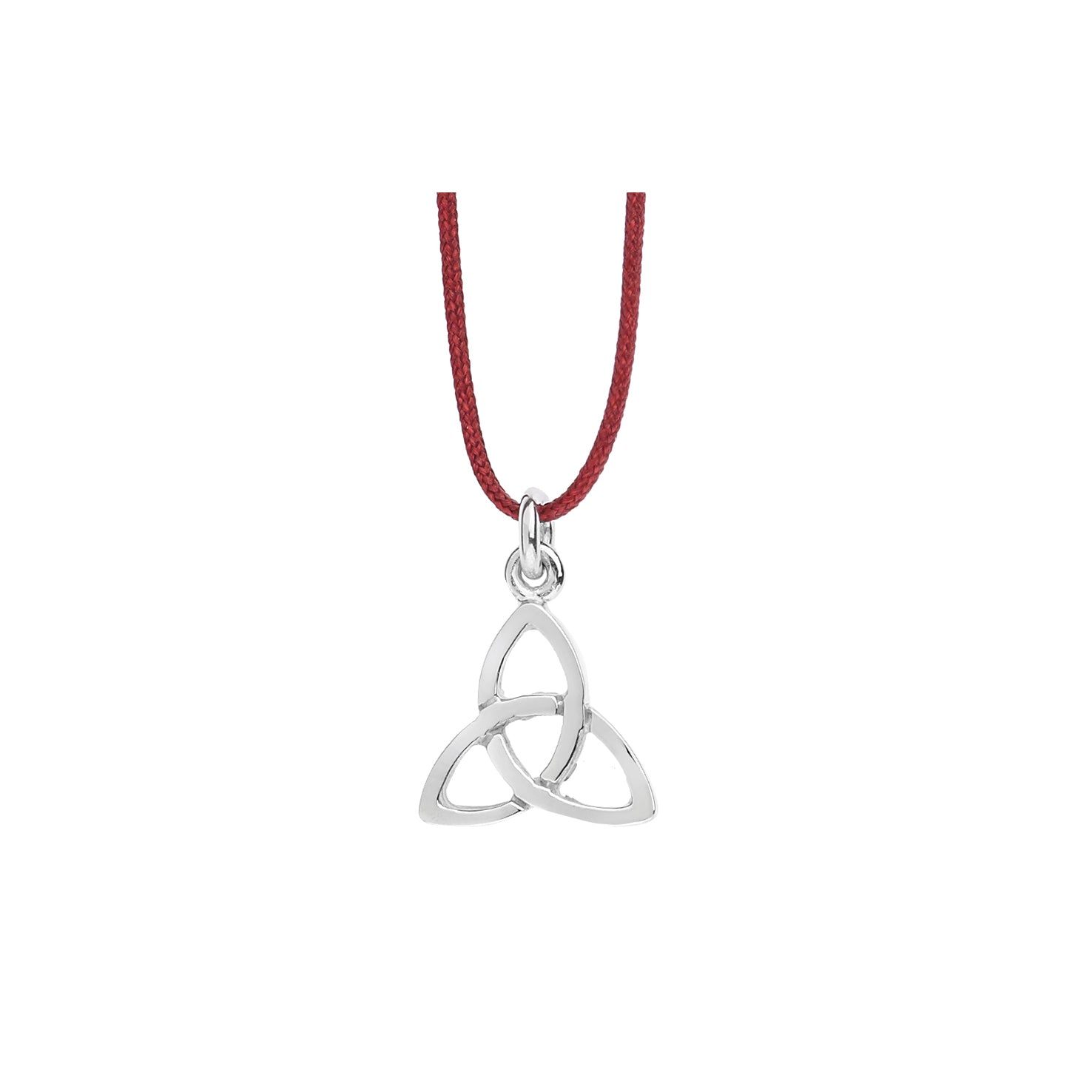 "Τriquetra", 18-carat white gold charm. Triquetra is an ancient Celtic symbol and a symbol of the Holy Trinity. It is often used to represent threefold fundamental meanings of life (air, water, and earth, Father, Son and Holy Spirit, mind, body and spirit) etc. It is handmade like all Michalis jewelry. You may have it with the color cord of your choice.