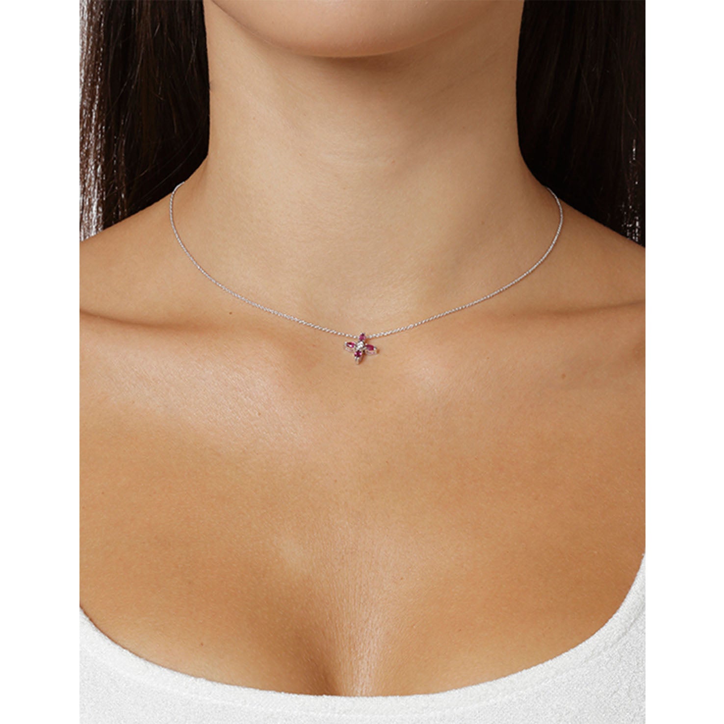 Ruby and diamond cross k18 white gold with chain. Total weight of the four marquise rubies 0,43 carats. Weight of the round brilliant diamond 0,03 carats. At Michalis we meticulously select unique colored stones with beautiful hues and diamonds of superior sparkle and beauty. Our artisans craft by hand all our designs. We can create your own according to your own preferences, with the sizes of stones and the color of gold you prefer. With your jewel you shall receive a guarantee that covers the jewel’s specifications and assures you of its supreme quality.
