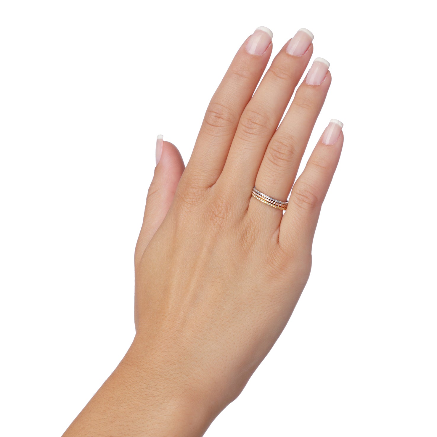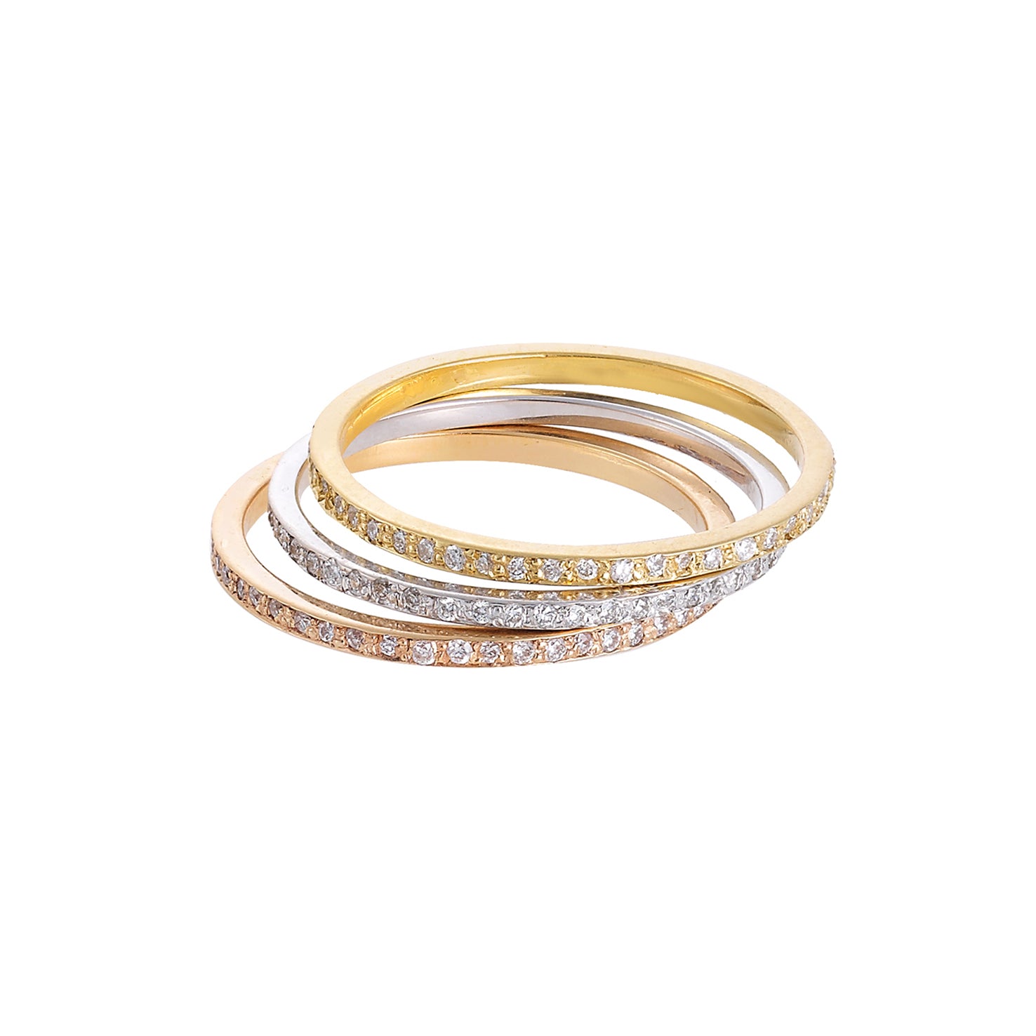 Set of Three Diamond Bands 18ΚΤ White, Yellow and Pink Gold. Product Code: 971R207100