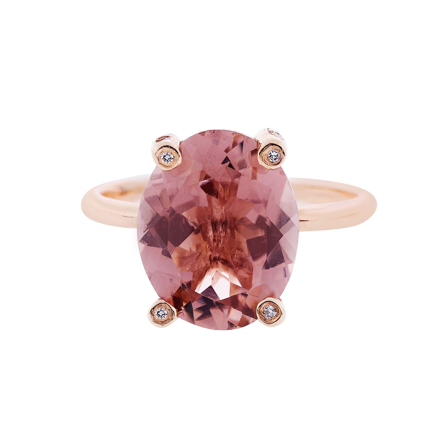 Tourmaline and diamond ring 18 carat pink gold. Oval cut tourmaline weight 4,07 carats. Brilliant cut diamonds total weight 0,04 carats. At Michalis we meticulously select natural precious coloured stones with beautiful colors and diamonds of superior sparkle and beauty. All our gems come from ethical sources. Our artisans jewellers, gem setters, polishers handcraft with great caution all our designs. With your jewel you shall receive a guarantee that covers the jewel's specifications and assures you of its supreme quality. For more information please call us.