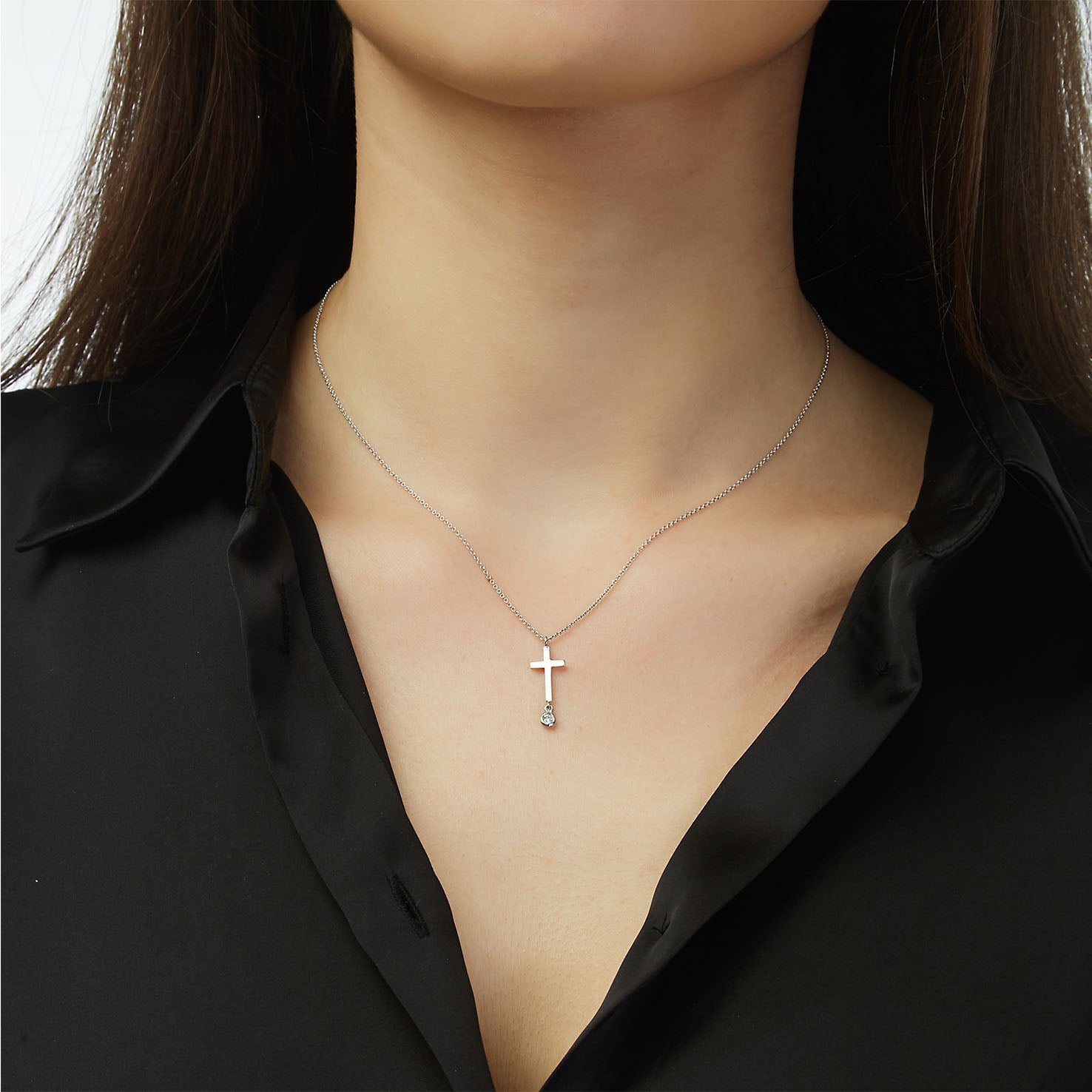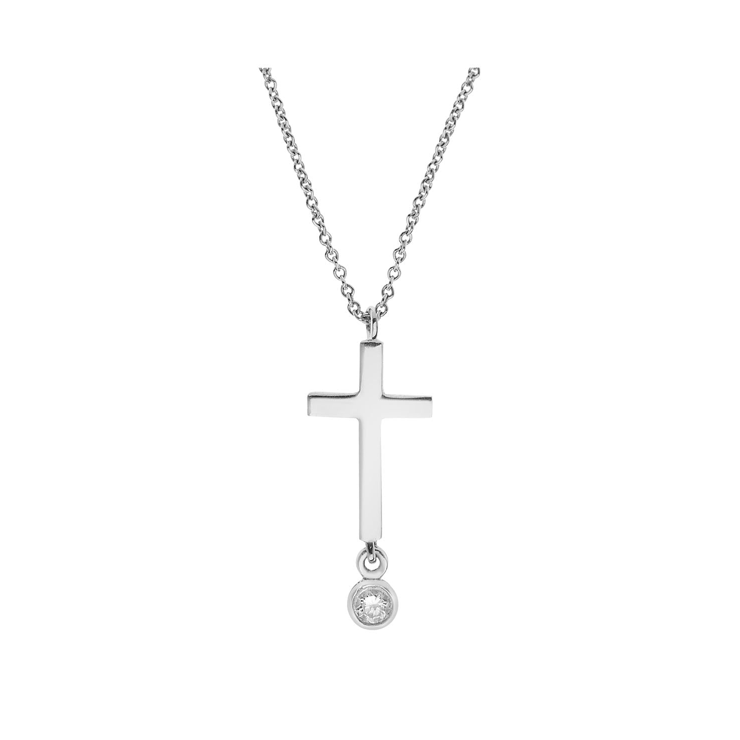 White gold cross 18KT with one brilliant cut diamond. Product Code: 286ST091.